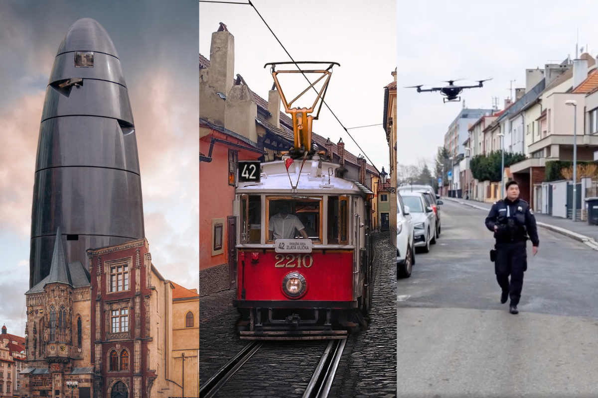 Brněnský orloj na Staromáku, tramvaj do Zlaté uličky a strážníci s drony. S aprílovými vtípky s i v Praze vyhráli