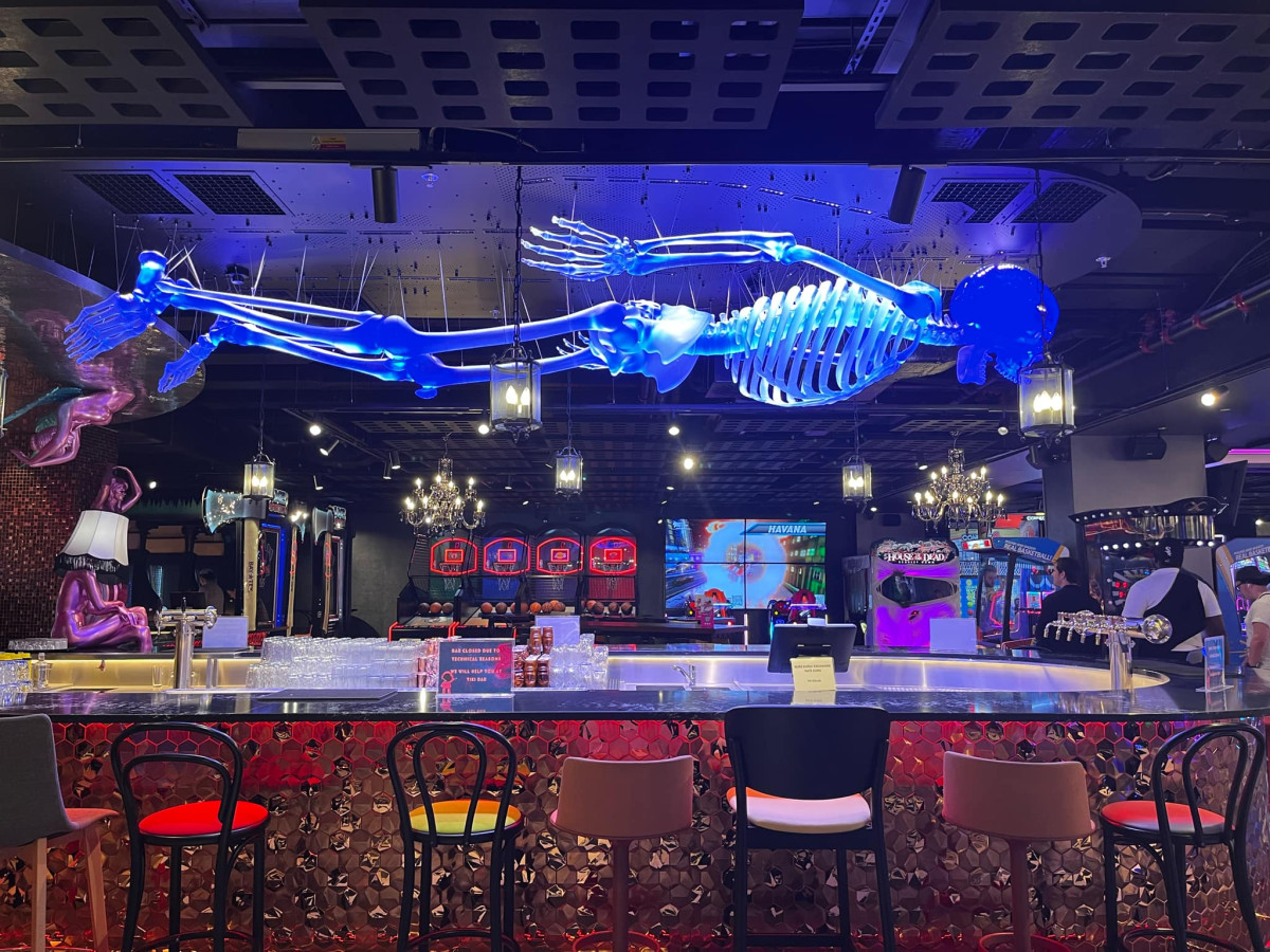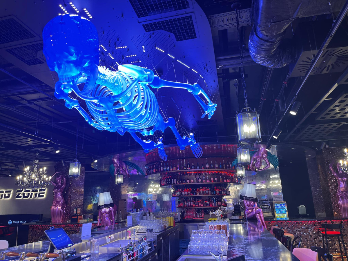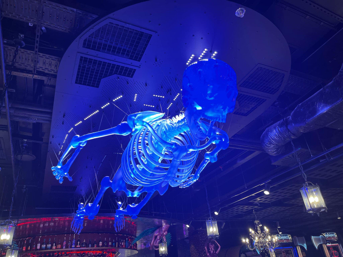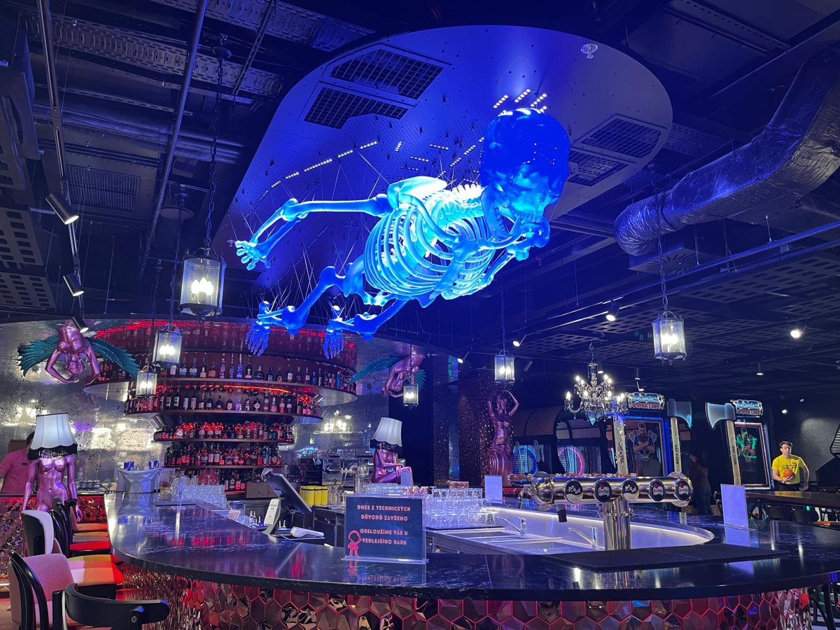 Máj už zdobí pětimetrový kostlivec, visí nad barem