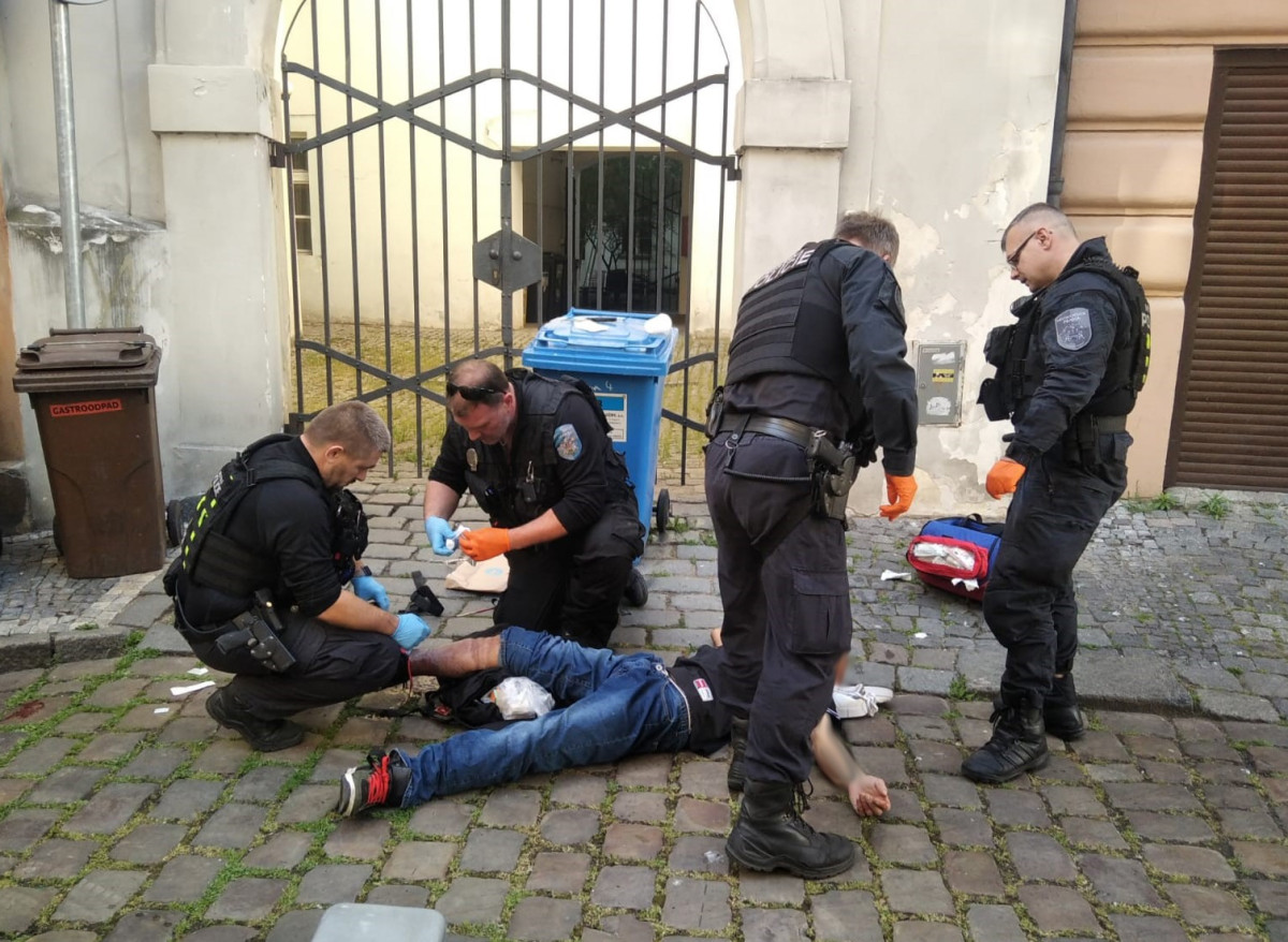 Muž se žloutenkou a HIV krvácel na ulici z rány po stříkačce, pomohli mu strážníci