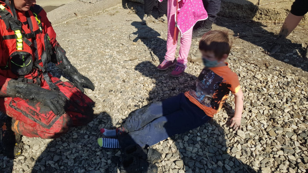 FOTO: Hasiči zachraňovali chlapce, který uvízl v bahně. K vypuštěné nádrži vyjížděly tři jednotky