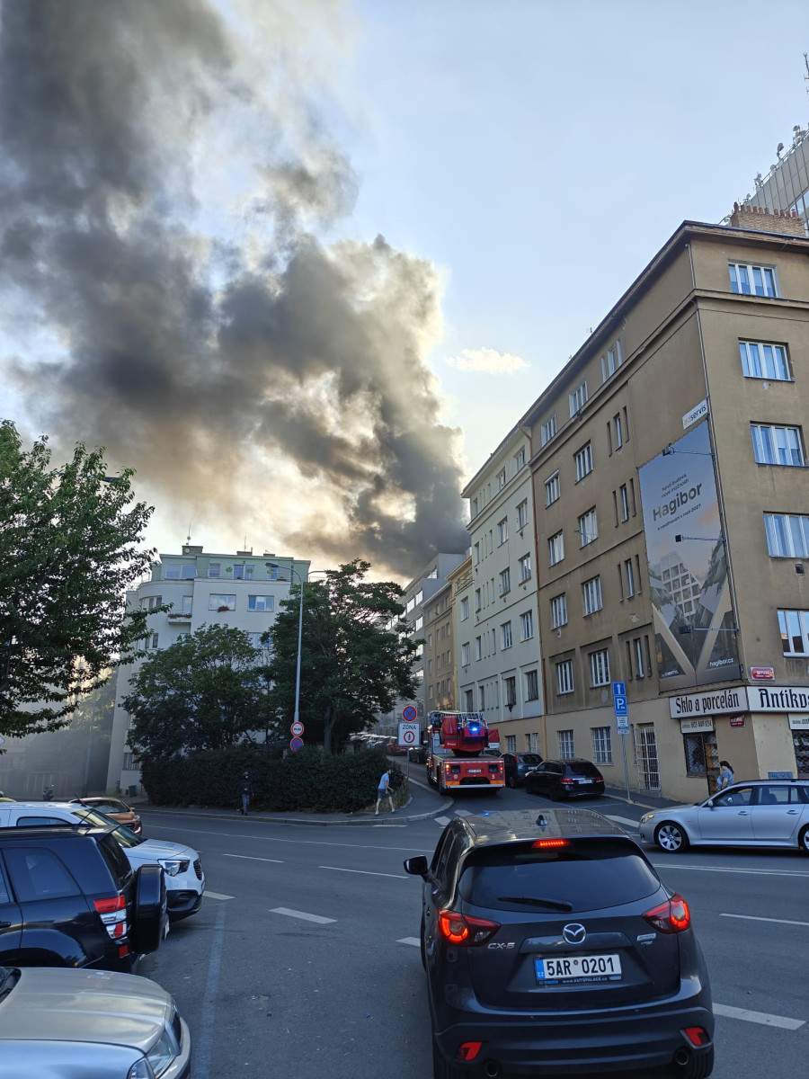 Ve Vinohradské hořela kancelářská budova, zasahovalo 13 hasičských jednotek