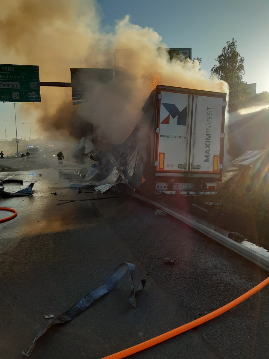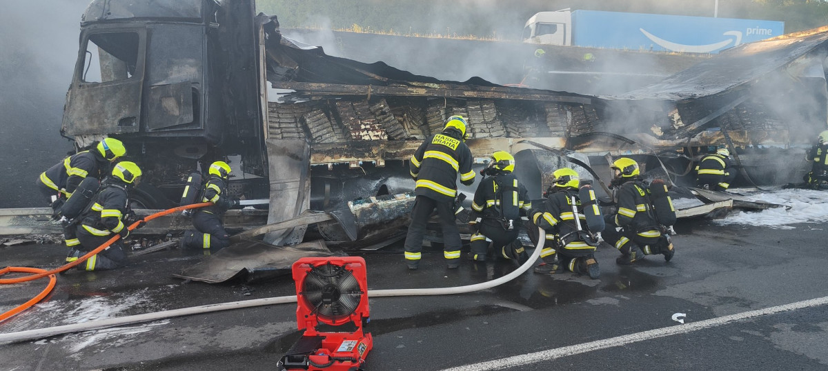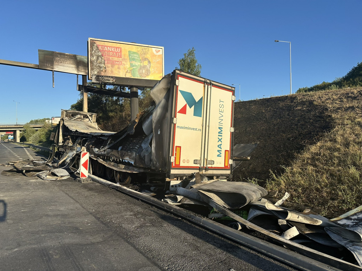 Požár kamionu omezil provoz na Jižní spojce u Štěrbohol