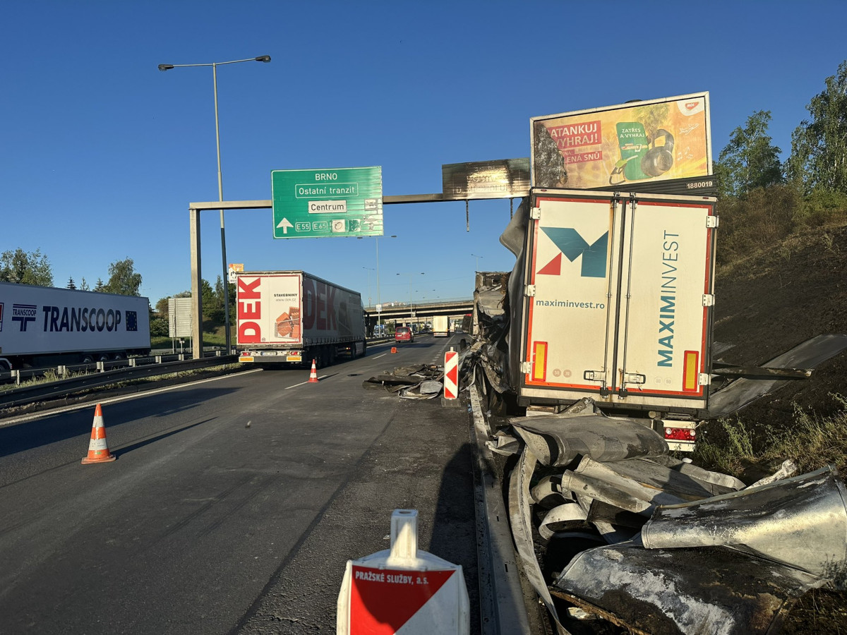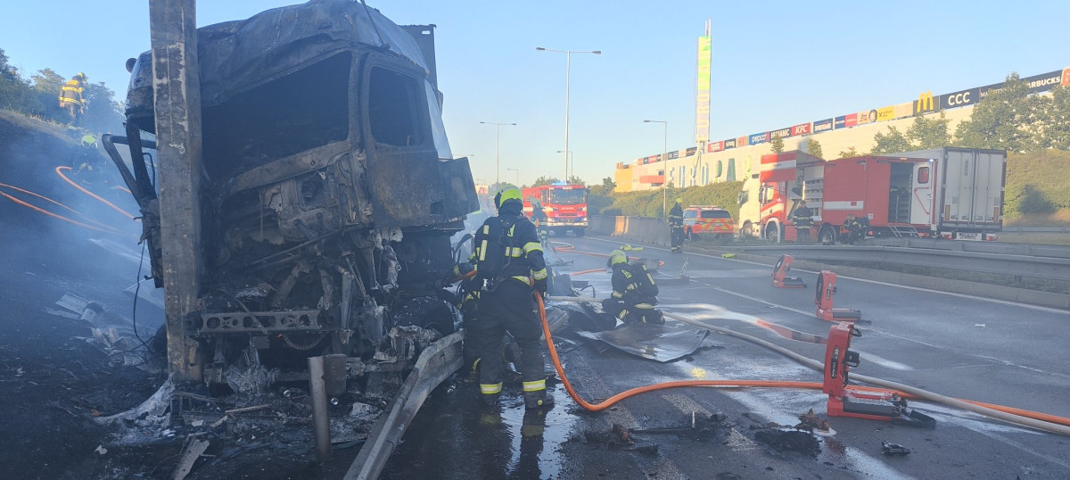 Požár kamionu zastavil provoz na Jižní spojce u Štěrbohol