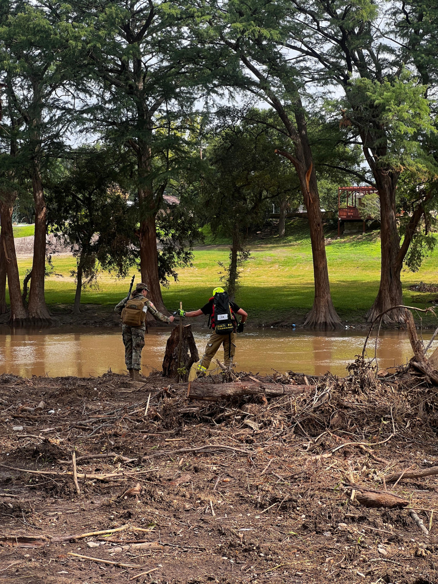 VIDEO: V Texasu pomáhají i hasiči z Prahy. Práci jim ztěžují jedovatí hadi i déšť