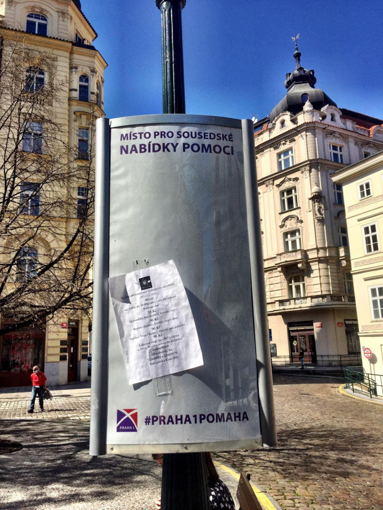 Cedule k ukáznění turistů v Praze 1 mění funkci. Lidé na nich mohou nabízet sousedskou pomoc