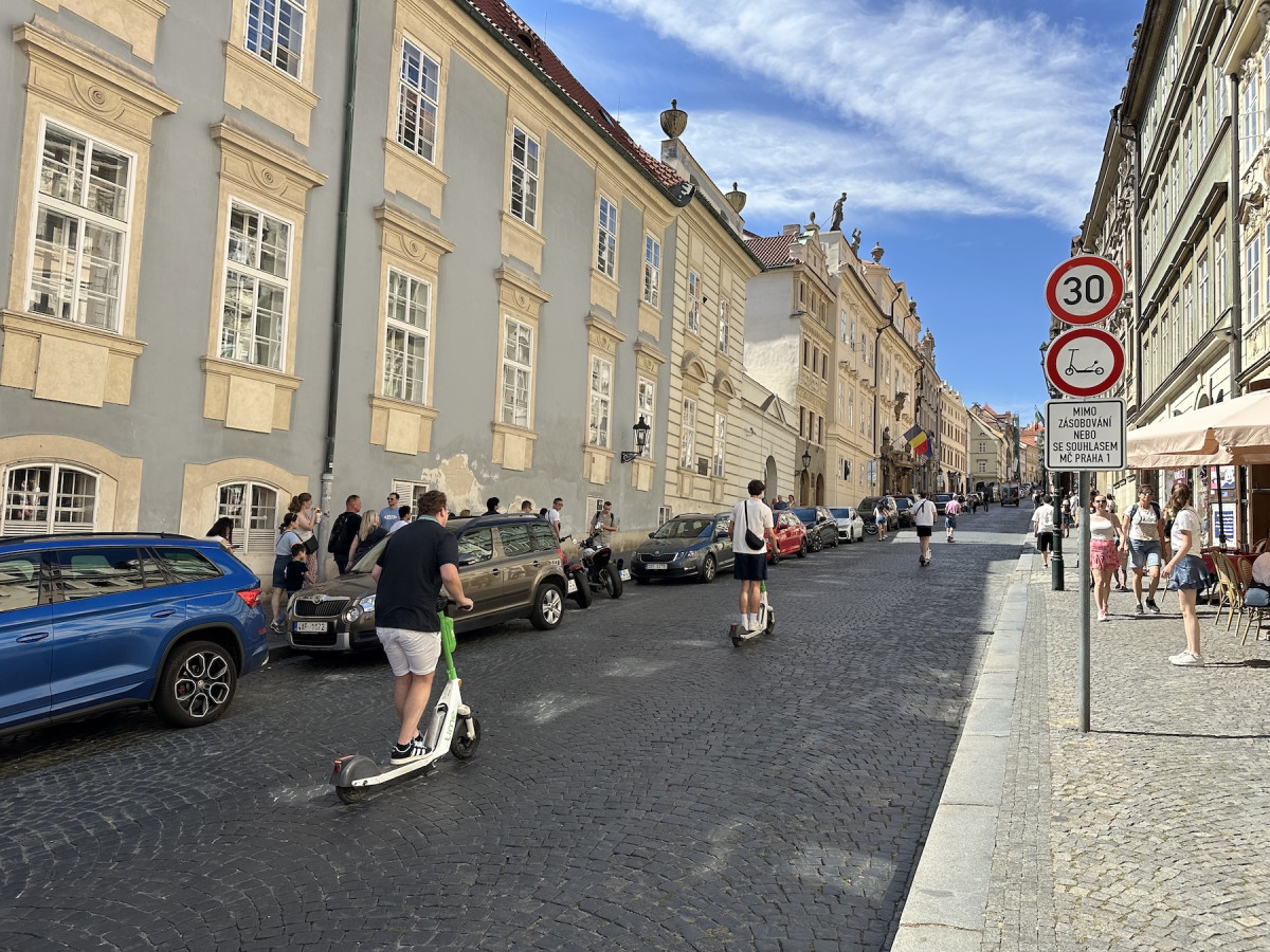 Praha 1 zakázala vjezd koloběžkám do Nerudovy. Značky jezdci hned ignorovali