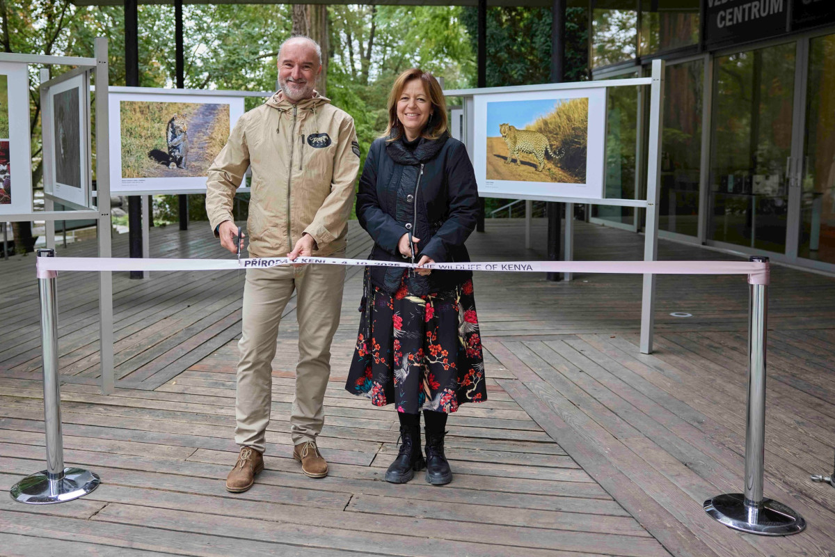 Náměstkyně Markéta Hoidekrová (vpravo) a autor, fotograf a cestovatel Roman Baláž Babilon na vernisáži v zoo.