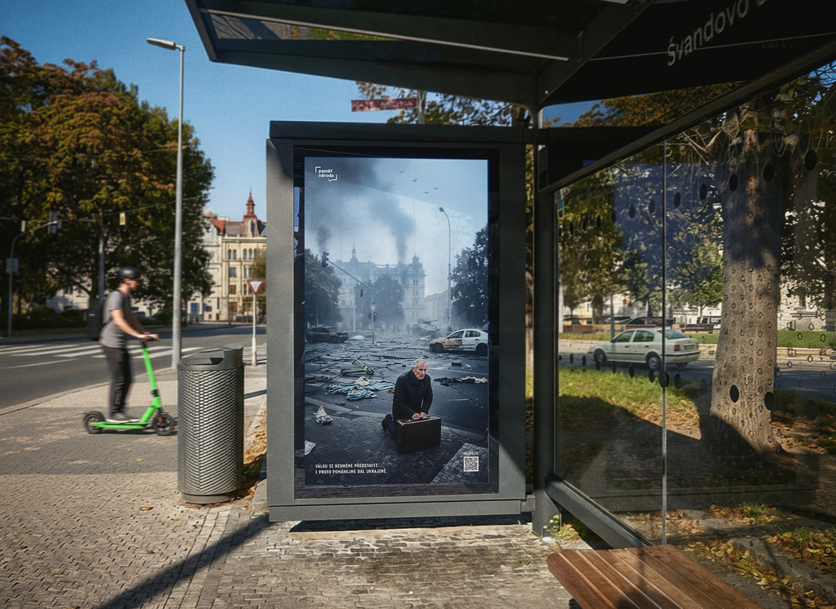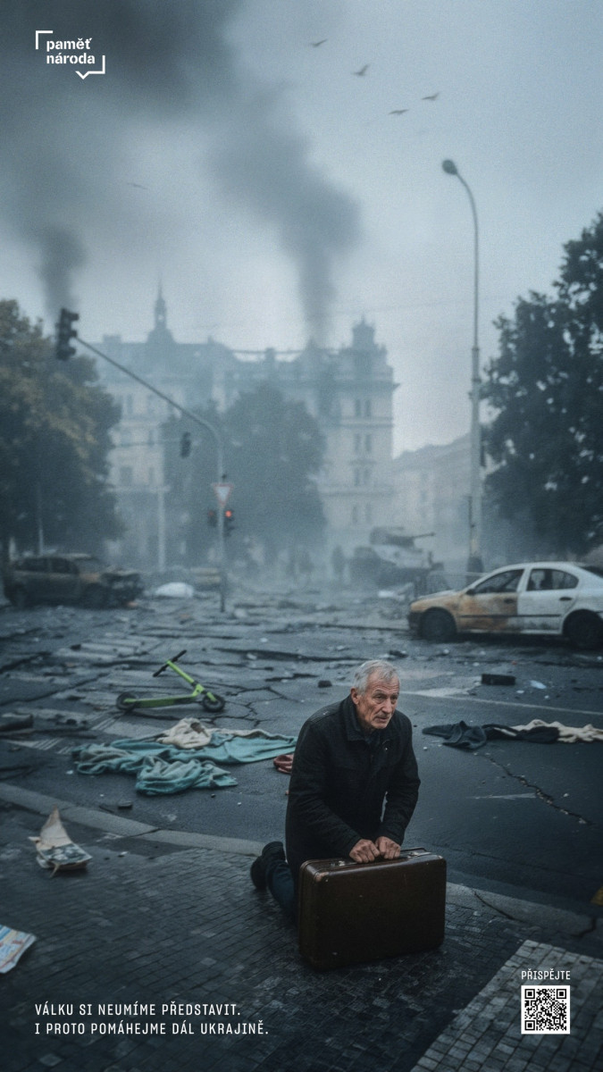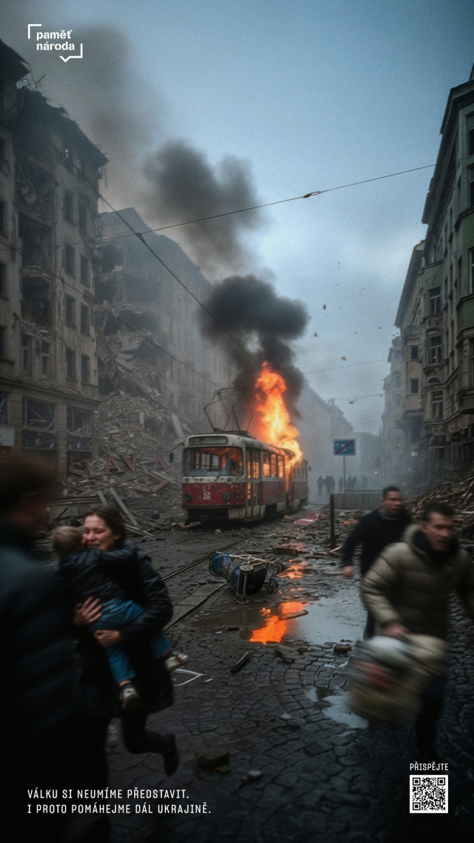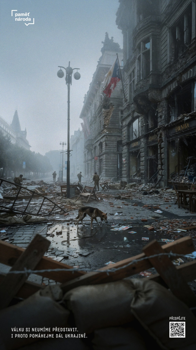 Praha zničená válkou. Paměť národa spustila v ulicích kampaň na podporu Ukrajiny