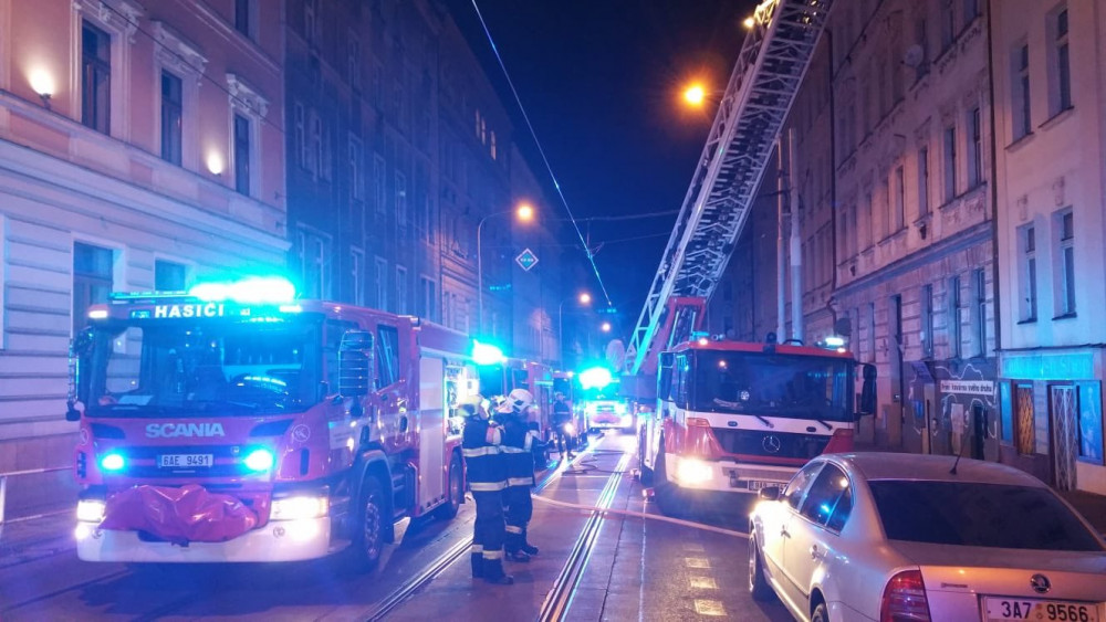 V Praze v noci hořel bytový dům, pět lidí skončilo v nemocnici.