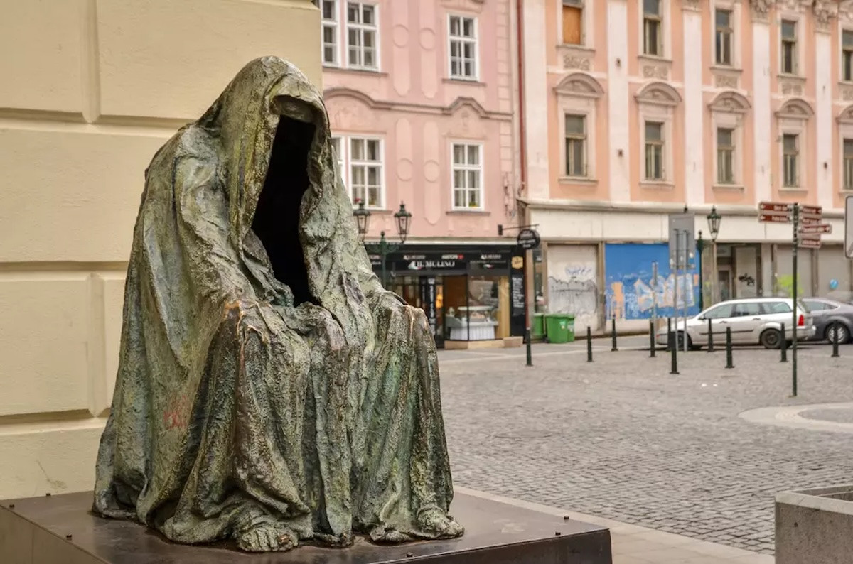 Od Stavovského divadla odstranili sochu Plášť svědomí, hledají pro ni nové místo