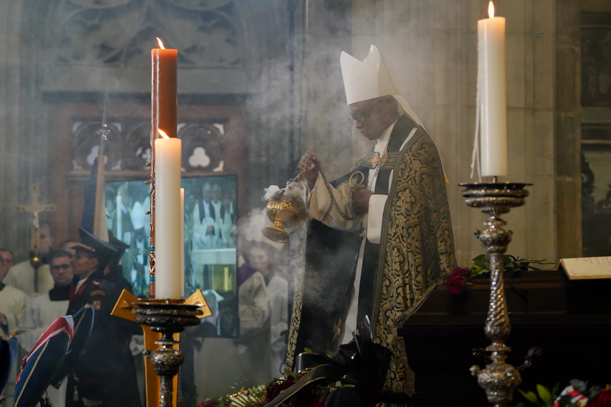 FOTO: Tři prezidenti, stíhačky, stovky lidí. Podívejte se na pohřeb kardinála Duky