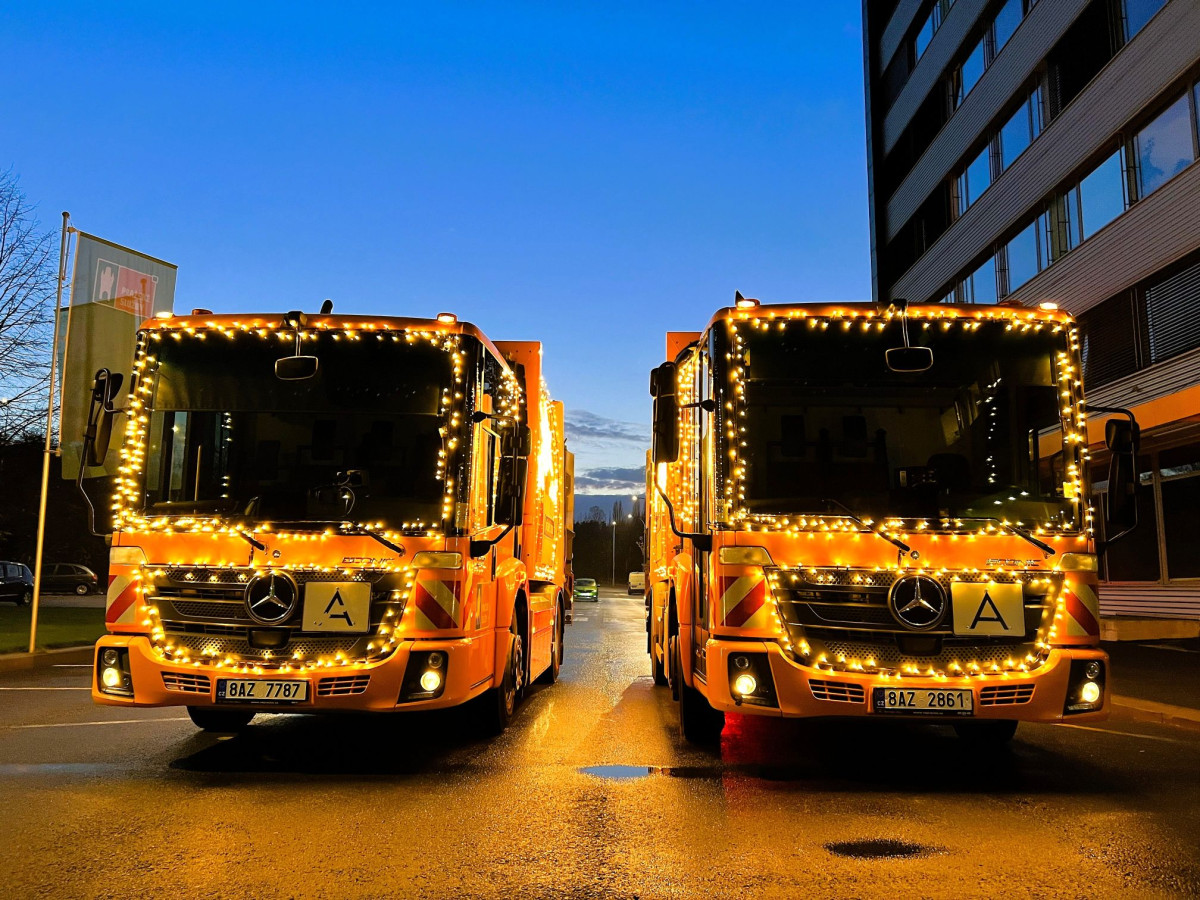 V centru Prahy budou odpad vyvážet dva vánočně ozdobené popelářské vozy