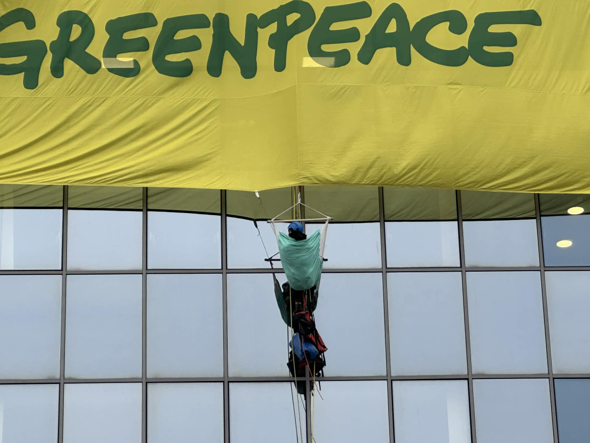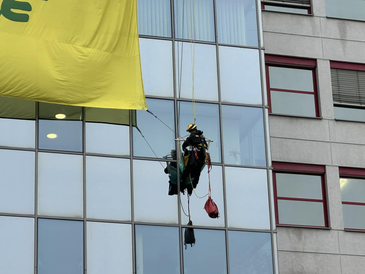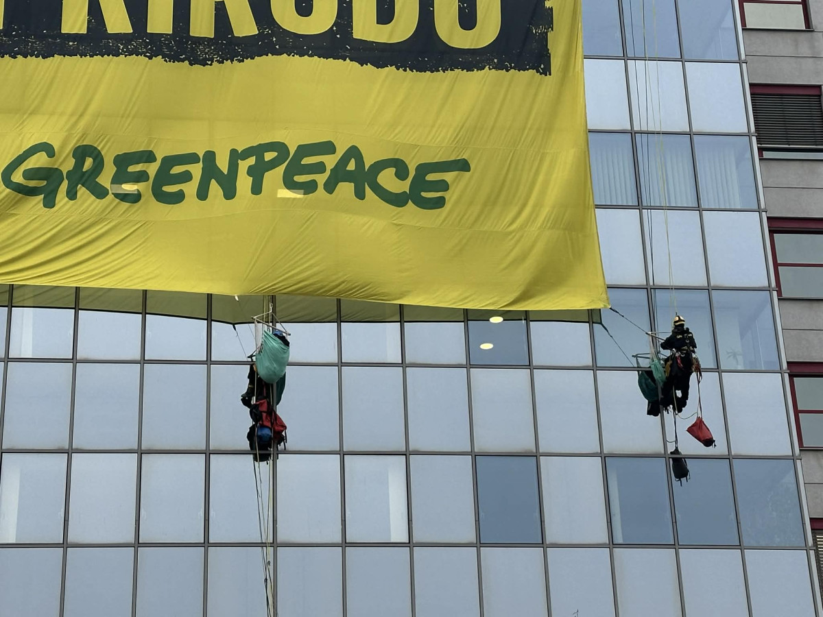VIDEO: Na budovu ministerstva životního prostředí vylezli demonstranti, zasahovala policie