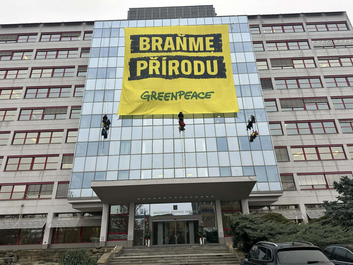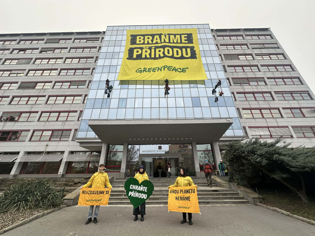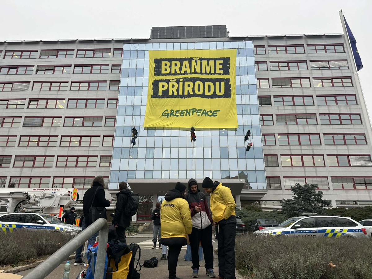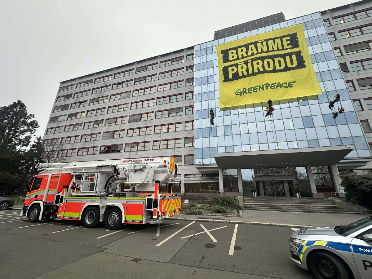 Na budovu ministerstva životního prostředí vylezli demonstranti, zasahuje policie