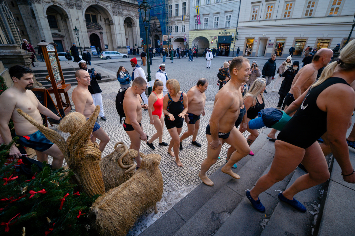 FOTO: Otužilci si zaplavali v ledové Vltavě u Karlova mostu