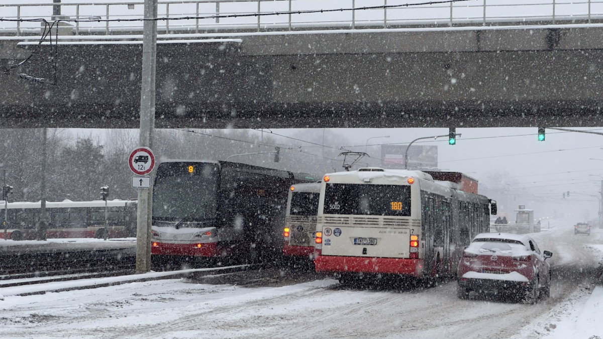 Uvízlé kamiony blokovaly silnice v Praze, došlo k několika hromadným nehodám