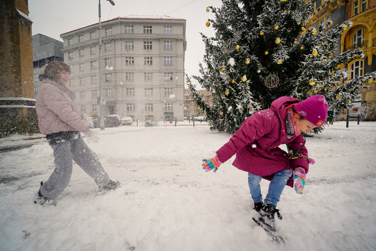 FOTO: Běžkařský trénink i dopravní kolaps. Sníh přinesl do Prahy radosti i trable