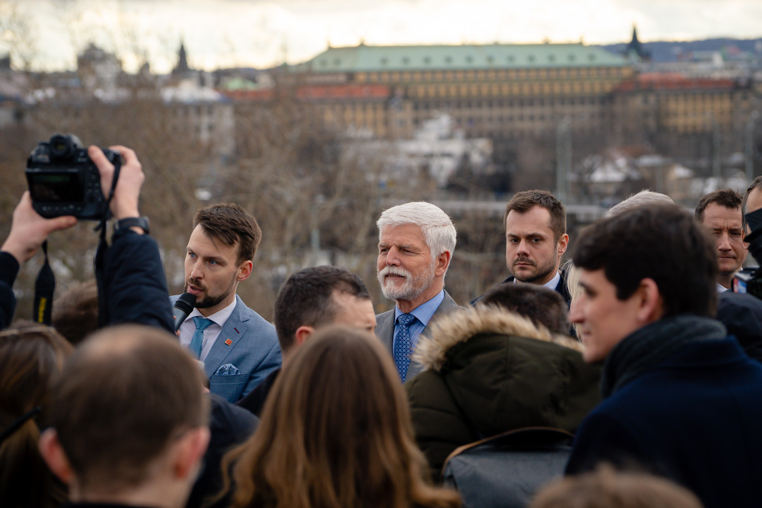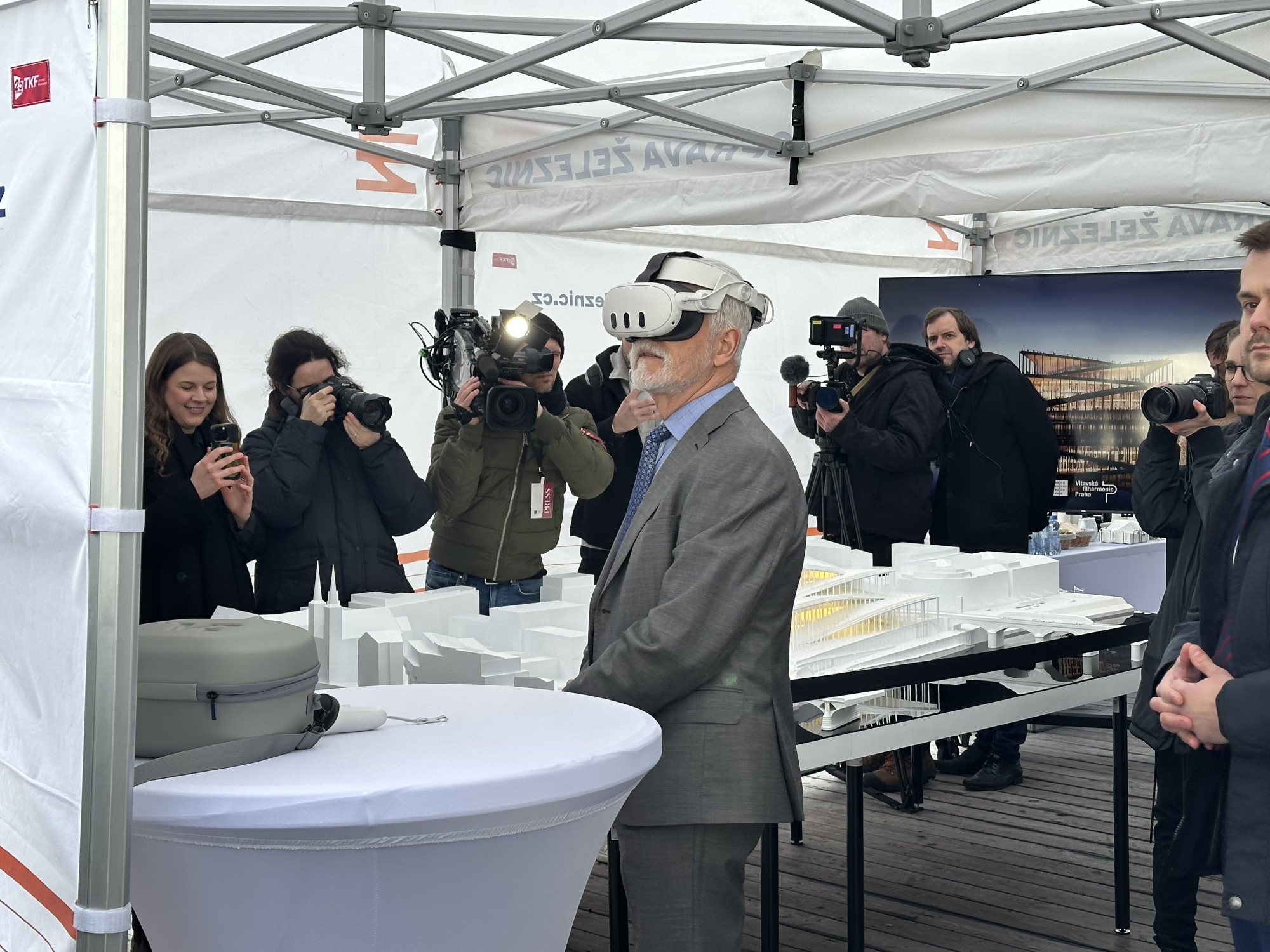 VIDEO: Prezident ve virtuální realitě. Díky speciálním brýlím se prošel Vltavskou filharmonií