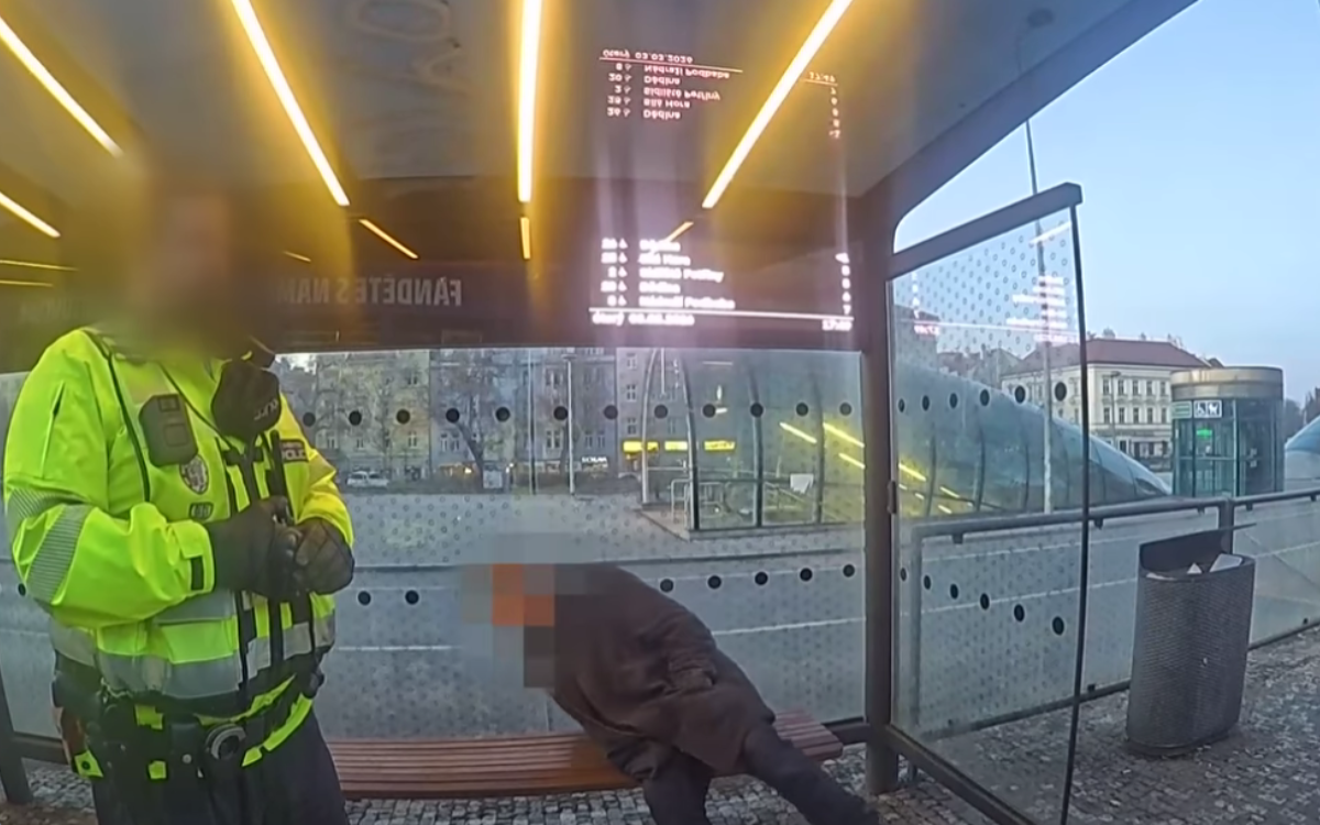 VIDEO: Chtěl se prát se strážníky a močil na zastávce. Opilý muž nadýchal 3,39 promile