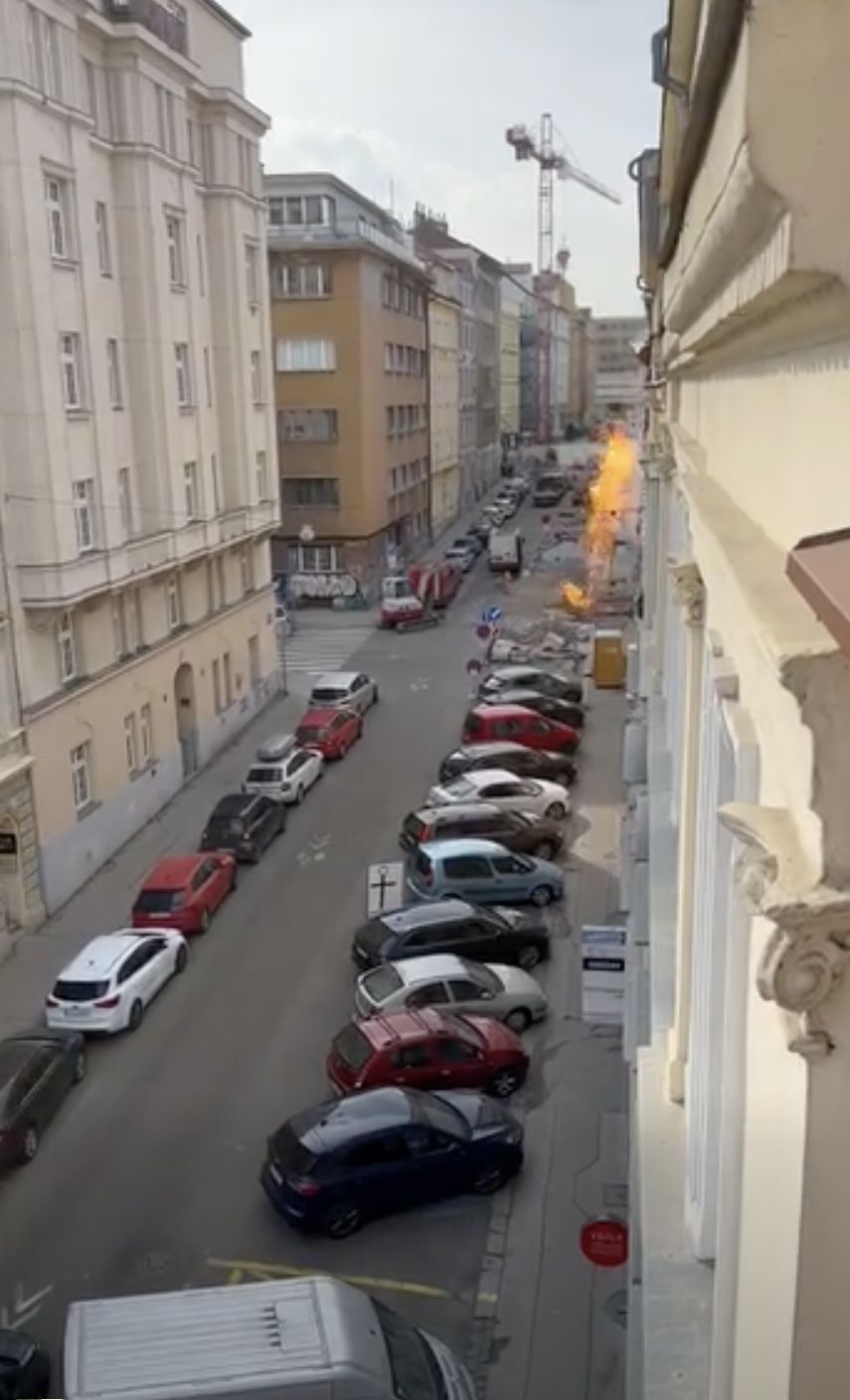 VIDEO: V ulici na Letné hoří plyn, lidé se museli evakuovat