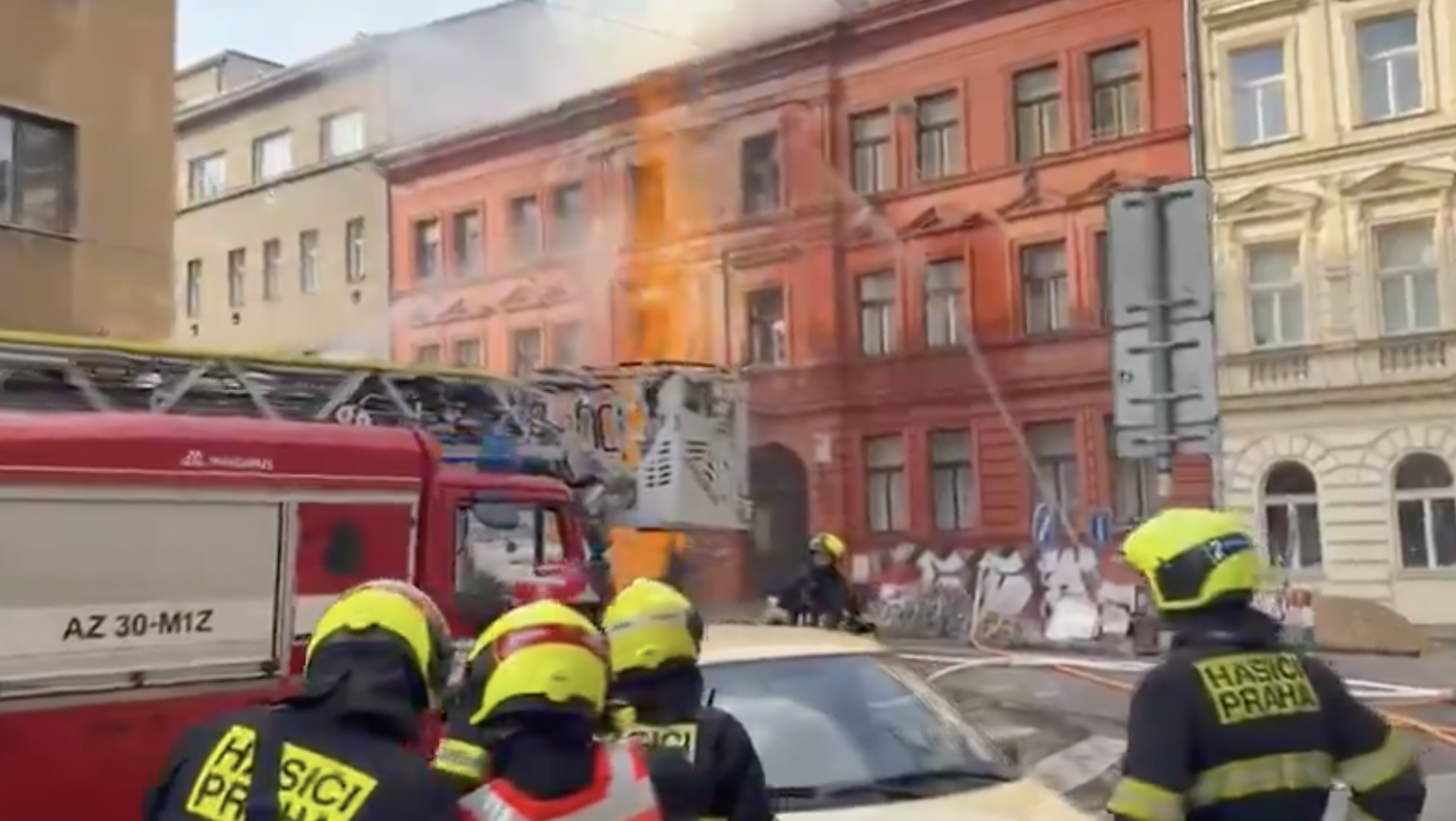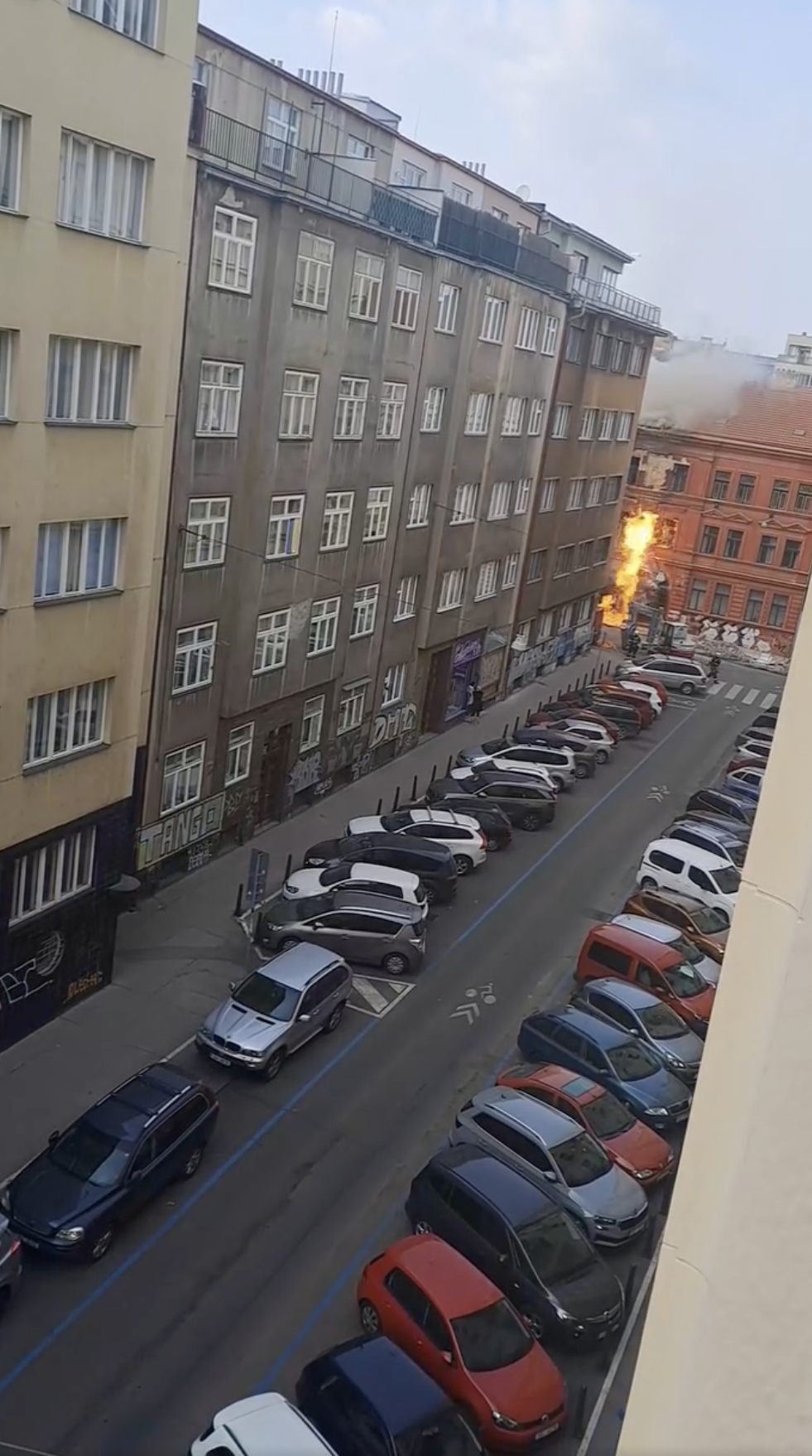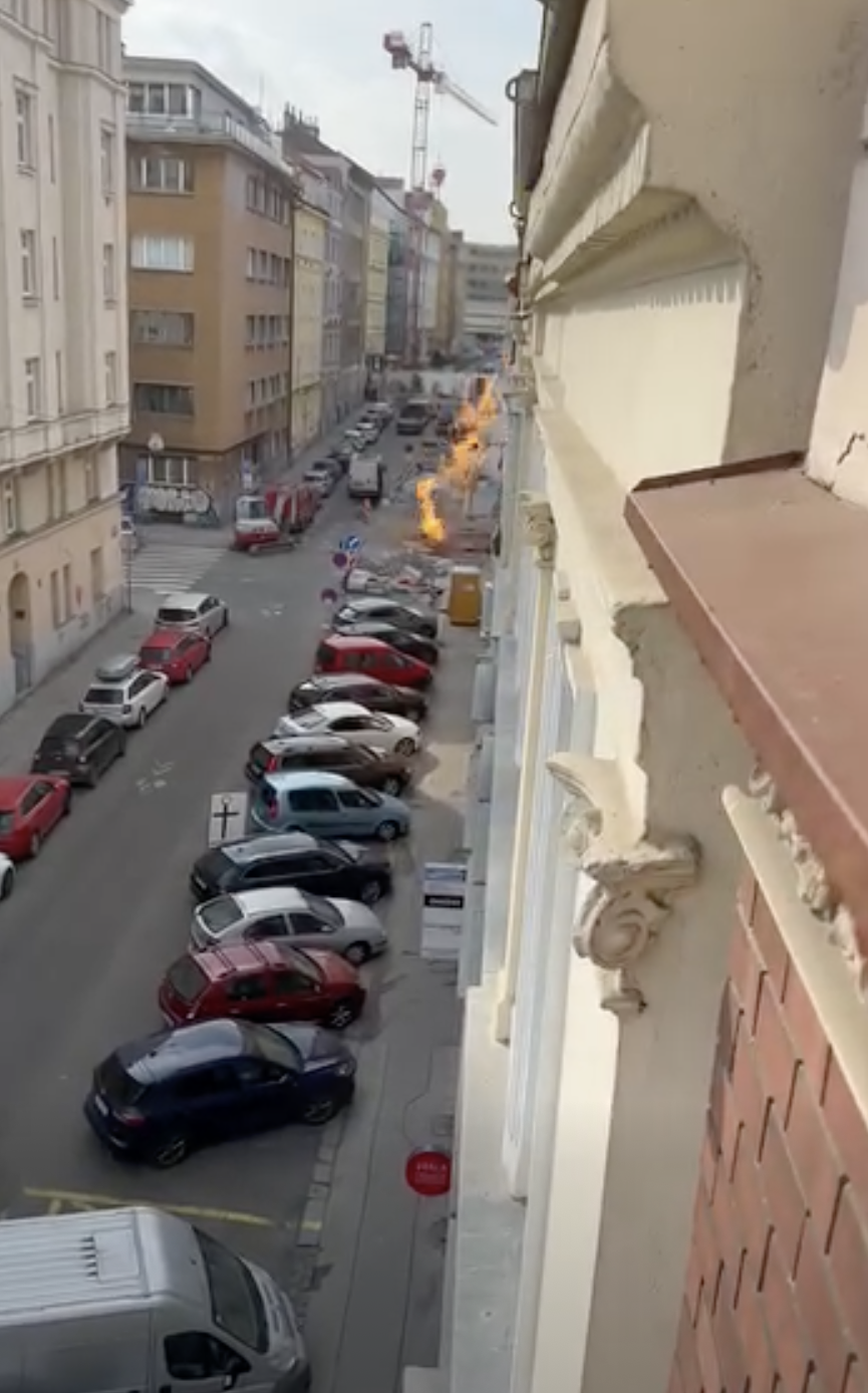 VIDEO: V ulici na Letné hoří plyn, hašení komplikuje malá kapacita hydrantů