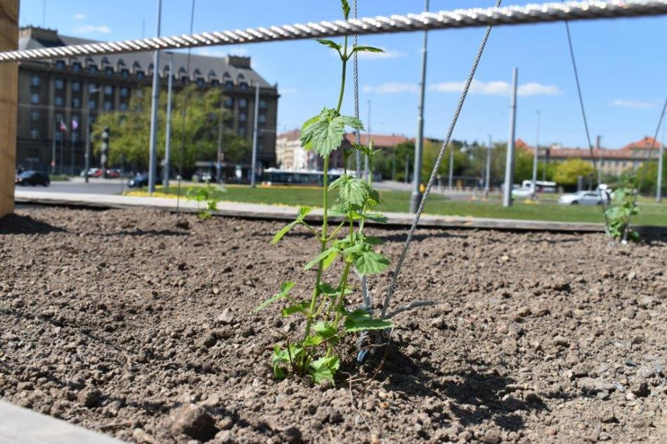 Na Kulaťáku roste chmelová stěna. Přispěje ke snížení prašnosti