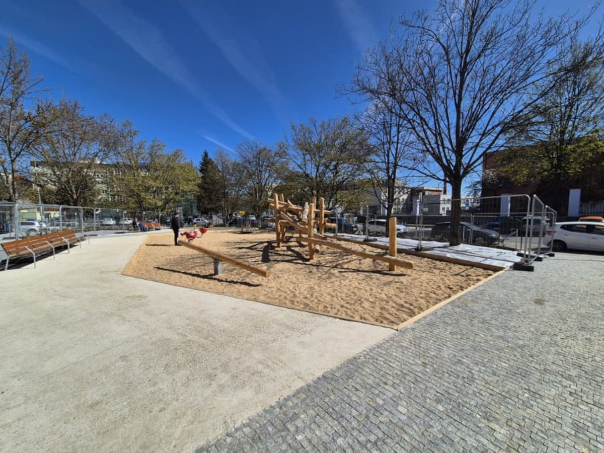 Hřiště, lavičky i šachový stolek. Parčík u vinohradské nemocnice prokoukl