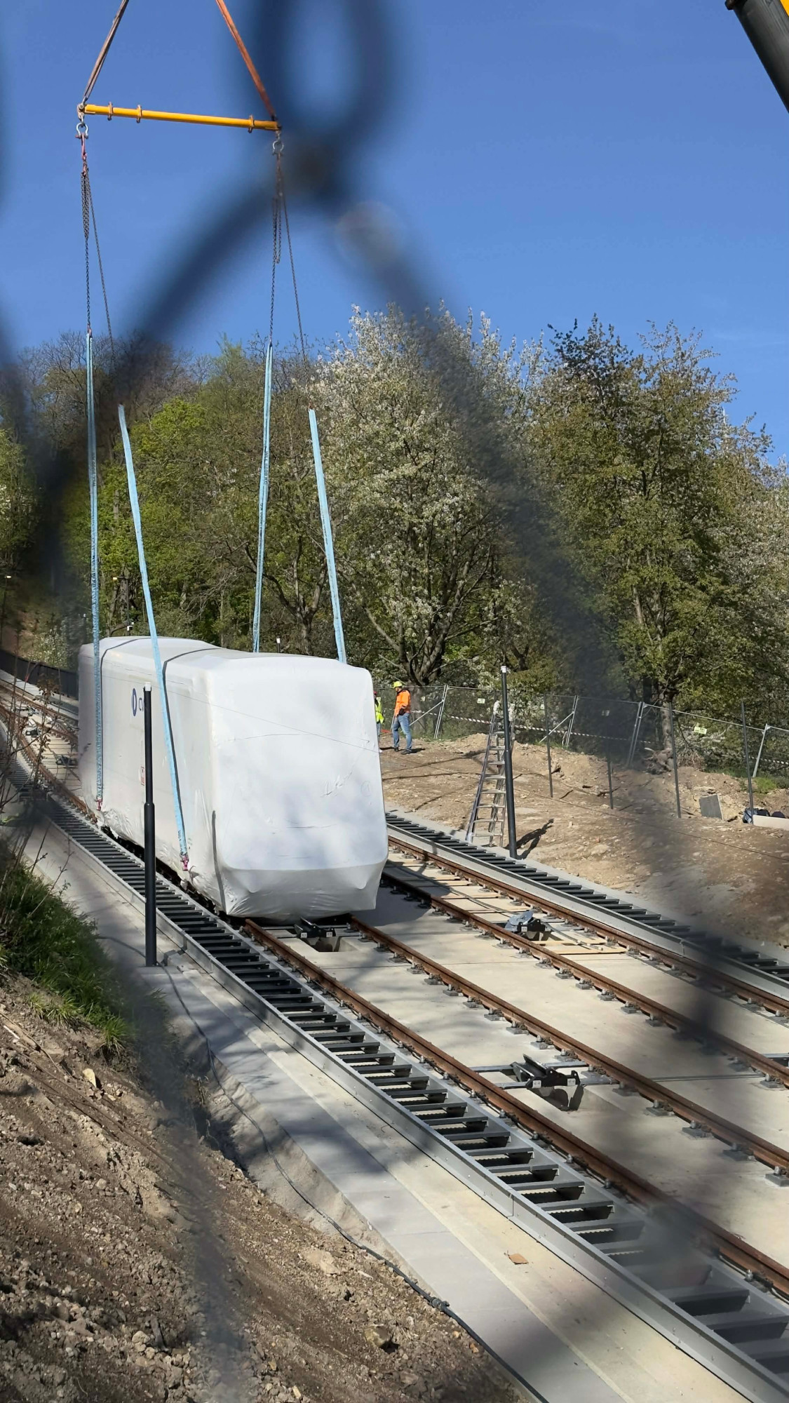 FOTO: Nové vozy petřínské lanovky už instalují na trať, v provozu budou na podzim