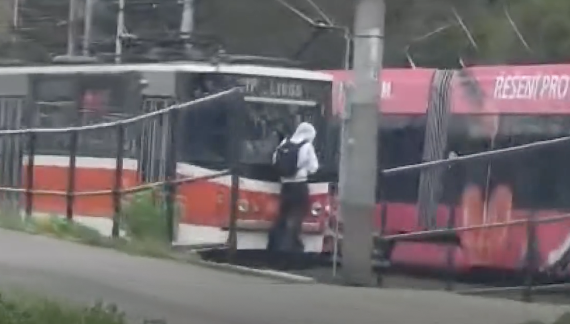 VIDEO: Mladík jel na spřáhle tramvaje, naháněla ho pak policie. Schoval se za balík slámy