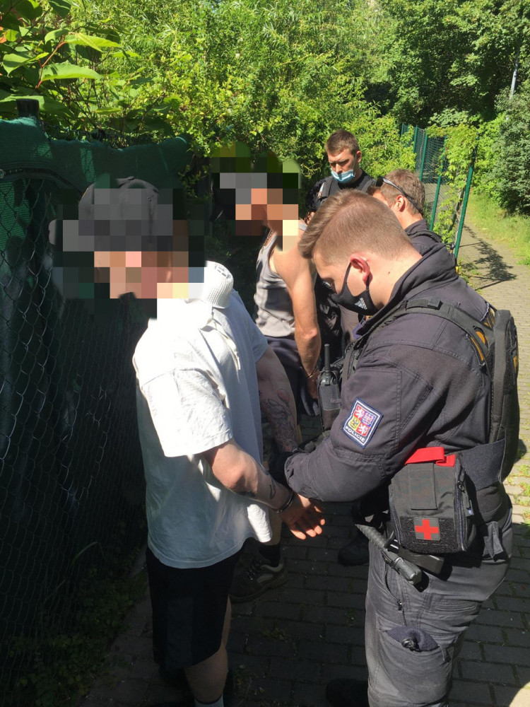 FOTO, VIDEO: Dvojice s kradeným motocyklem si všiml policista venčící psa. Muže zadržel a předal kolegům
