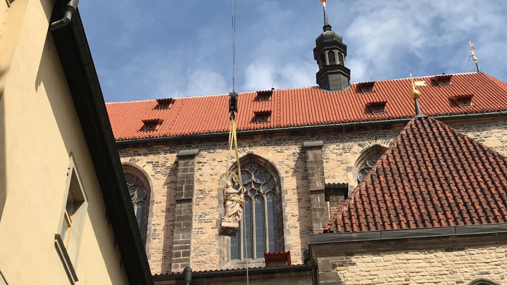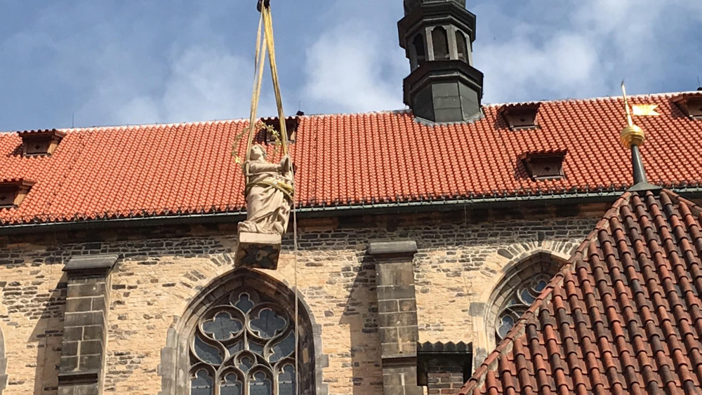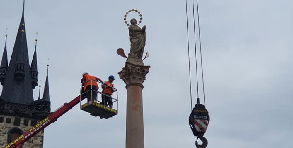 FOTO, VIDEO: Na Staromáku nově stojí mariánský sloup. Podívejte se na instalaci