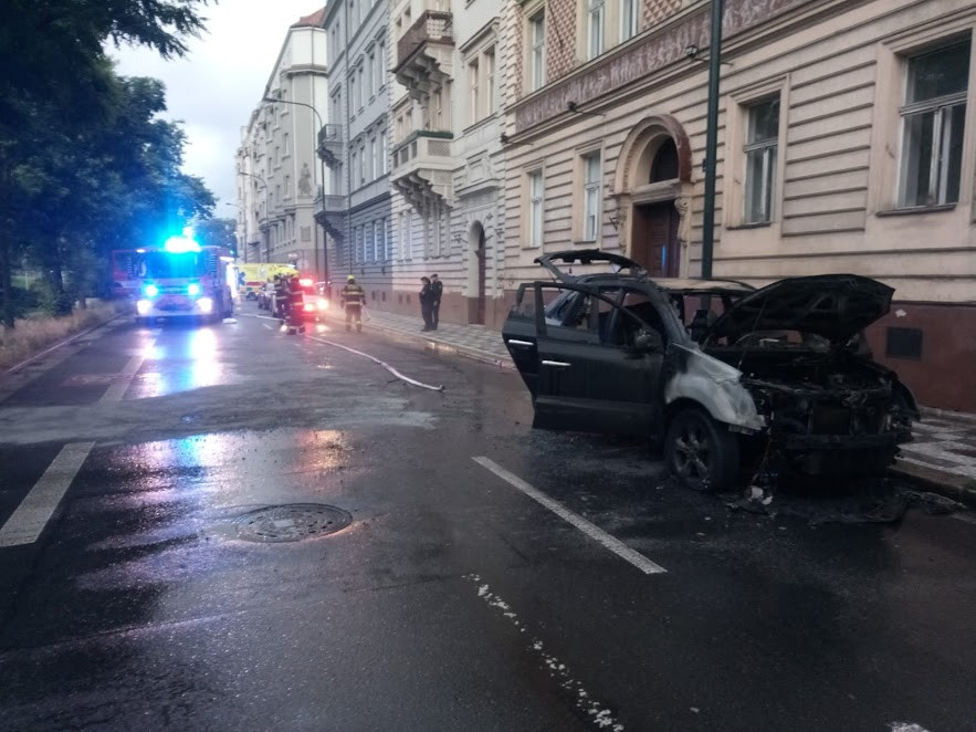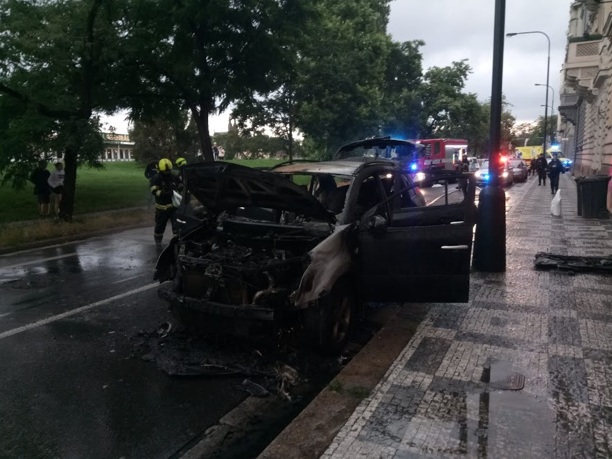Požár automobilu zastavil provoz na Smíchově. Škoda je 100 tisíc korun.