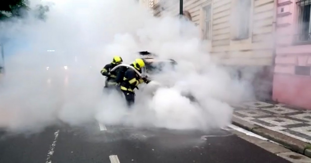 FOTO, VIDEO: Požár automobilu zastavil provoz na Smíchově. Škoda je 100 tisíc korun
