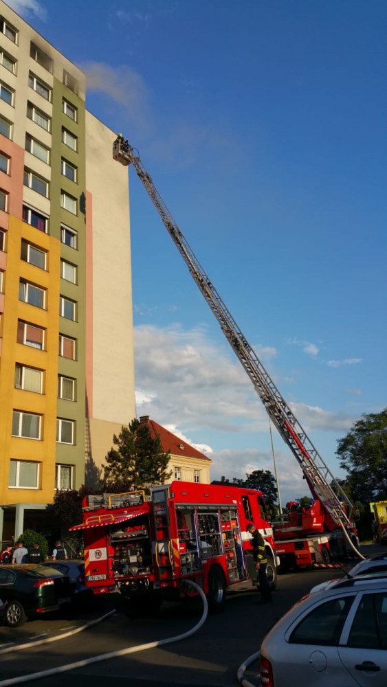 FOTO: Na Žižkově hořel byt. Hasiči evakuovali 57 lidí. Jedna kočka požár nepřežila