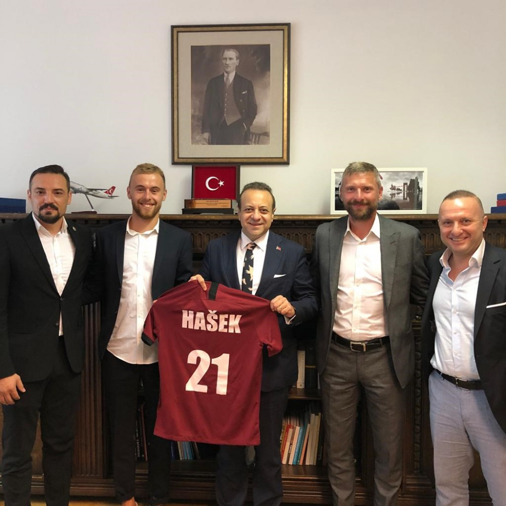 Hašek všem opět motá hlavu. S dresem Sparty se fotil na turecké ambasádě v Praze