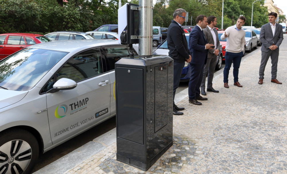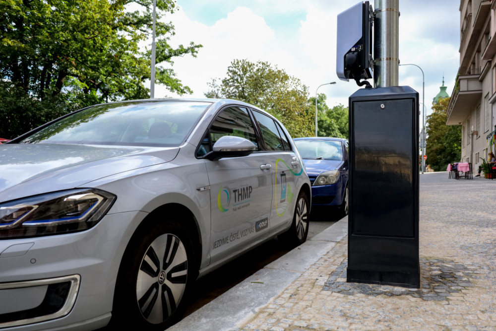 FOTO: Třináct nových stožárů veřejného osvětlení pro dobíjení elektromobilů vzniklo na Vinohradech