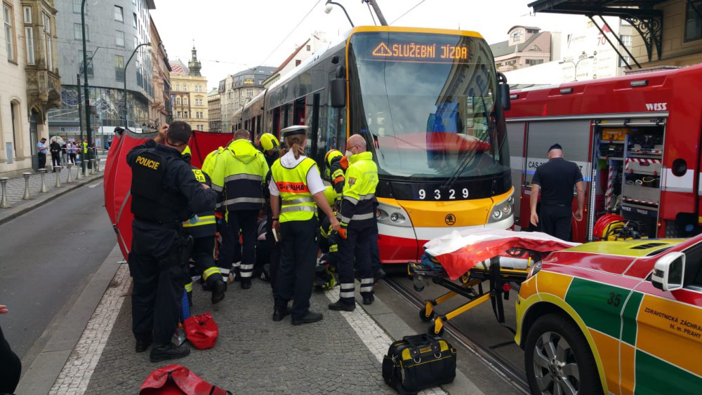 AKTUÁLNĚ: Hasiči u Masarykova nádraží vyprostili člověka zpod tramvaje