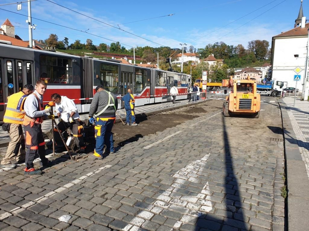 Dělníci na Malostranské rozšiřují tramvajové ostrůvky. Hotovo by mělo být příští týden