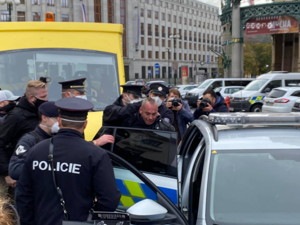 FOTO, VIDEO: První konflikty ještě před začátkem. V Praze vypukly demonstrace proti vládním opatřením