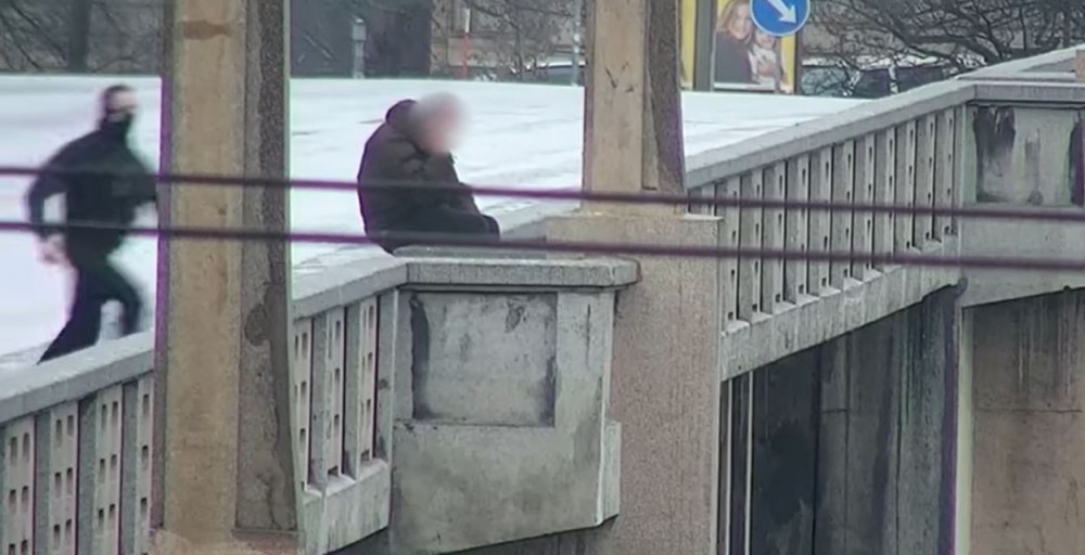 VIDEO: Muž chtěl spáchat sebevraždu skokem z mostu do Vltavy. Život mu zachránili policisté