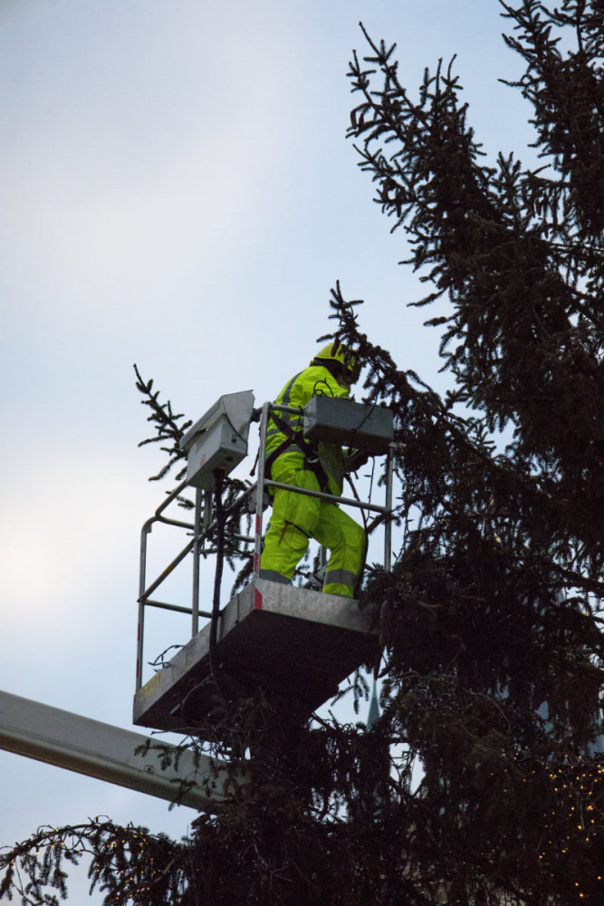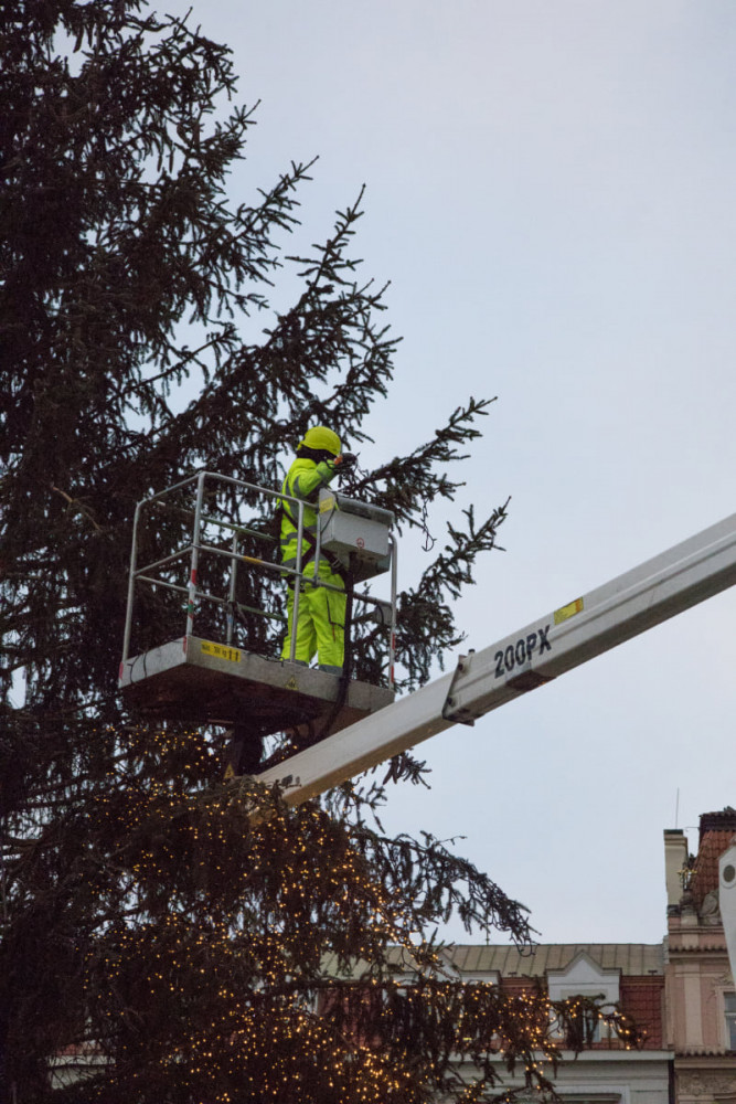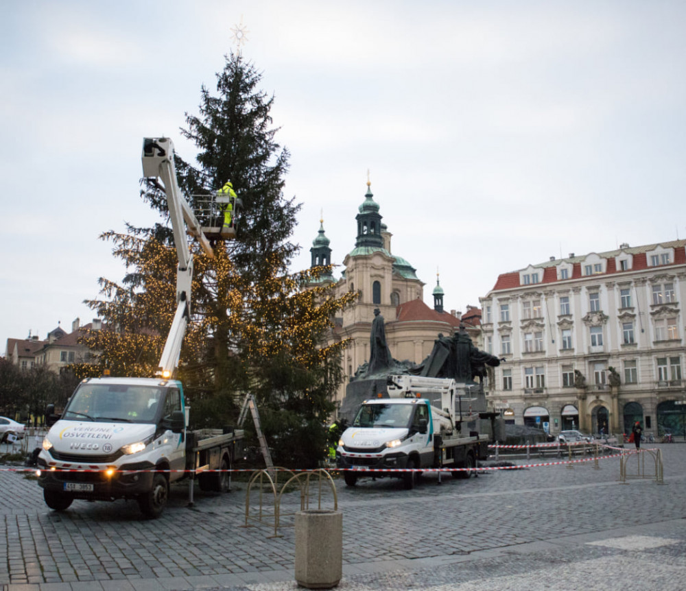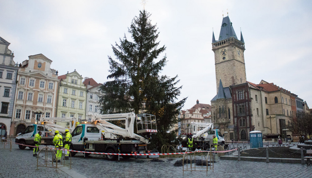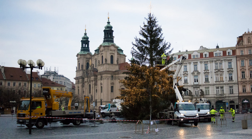 FOTO: Podívejte se, jak probíhalo odstrojování vánočního stromu na Staroměstském náměstí. Co s ním bude dál?