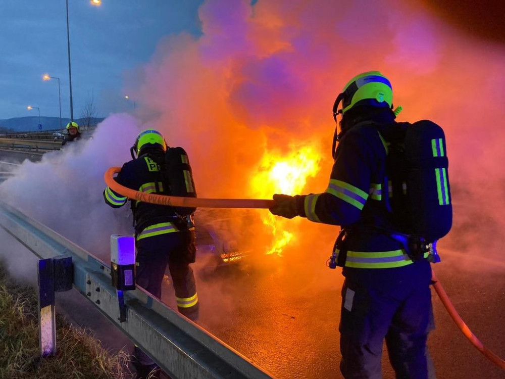 FOTO, VIDEO: U Radotínského mostu hořelo auto. Hasiči požár rychle zlikvidovali