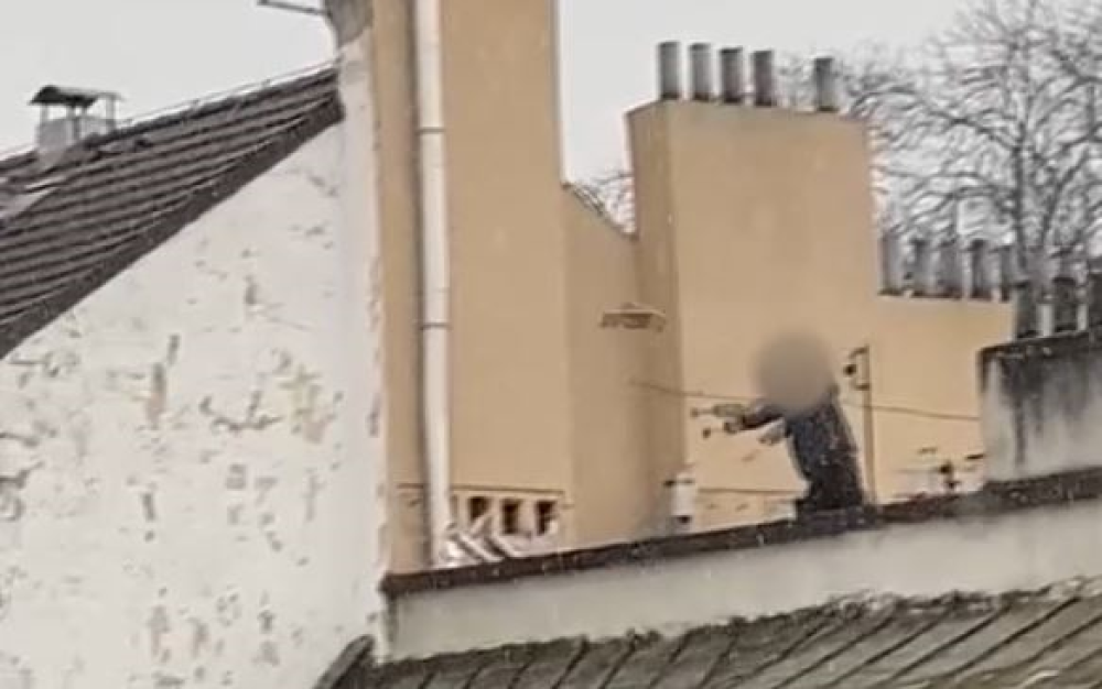 FOTO, VIDEO: Muž házel ze střechy na ulici kusy betonu, pak se chtěl zabít