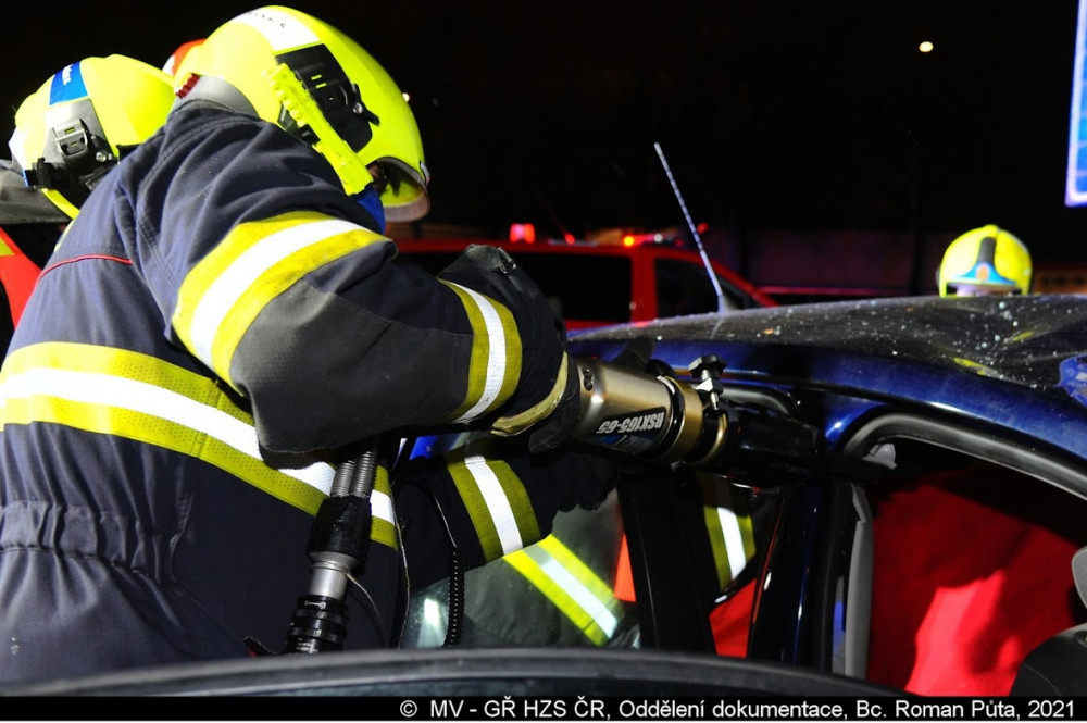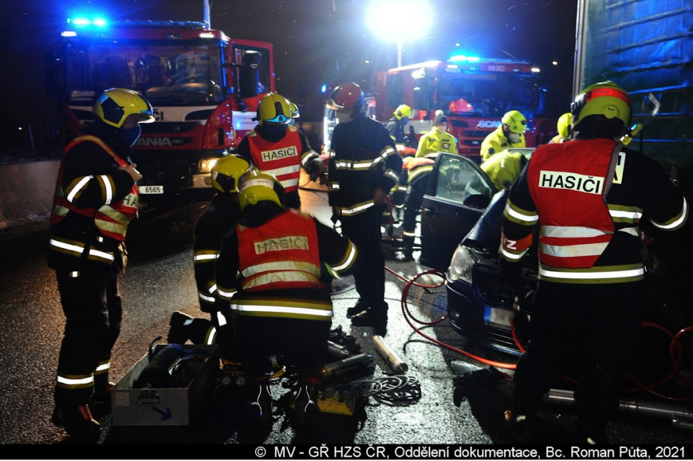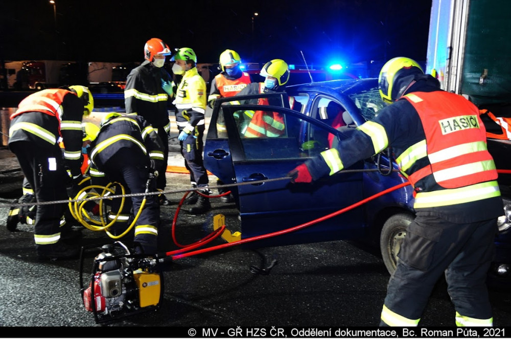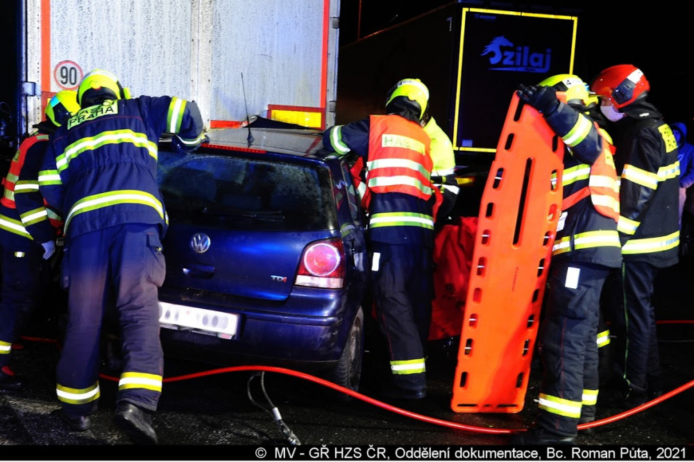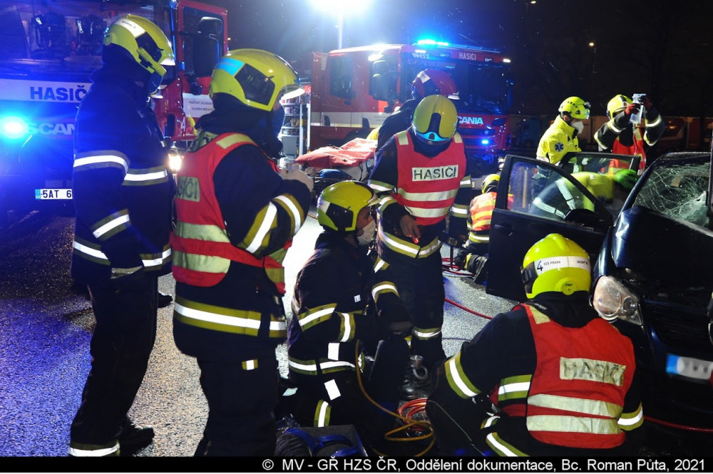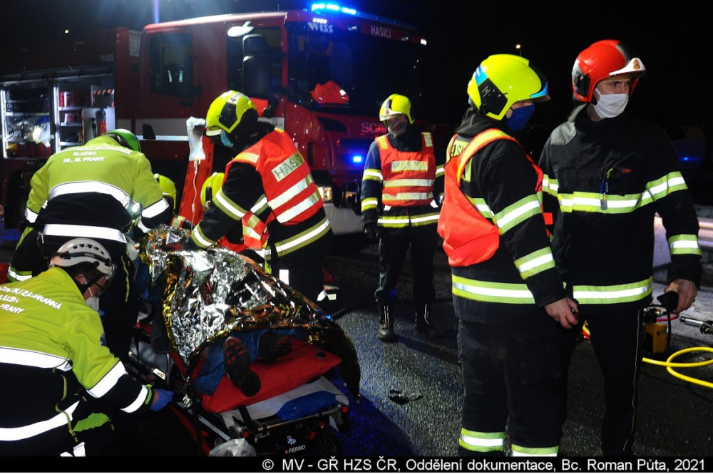 FOTO: Hasiči včera večer zasahovali u nehody u Průhonic. Jednoho člověka museli vyprostit