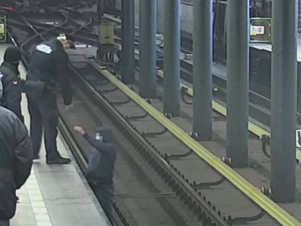 Mladík si chtěl zkrátit cestu přes koleje metra. Zpět na nástupiště mu museli pomoct strážníci