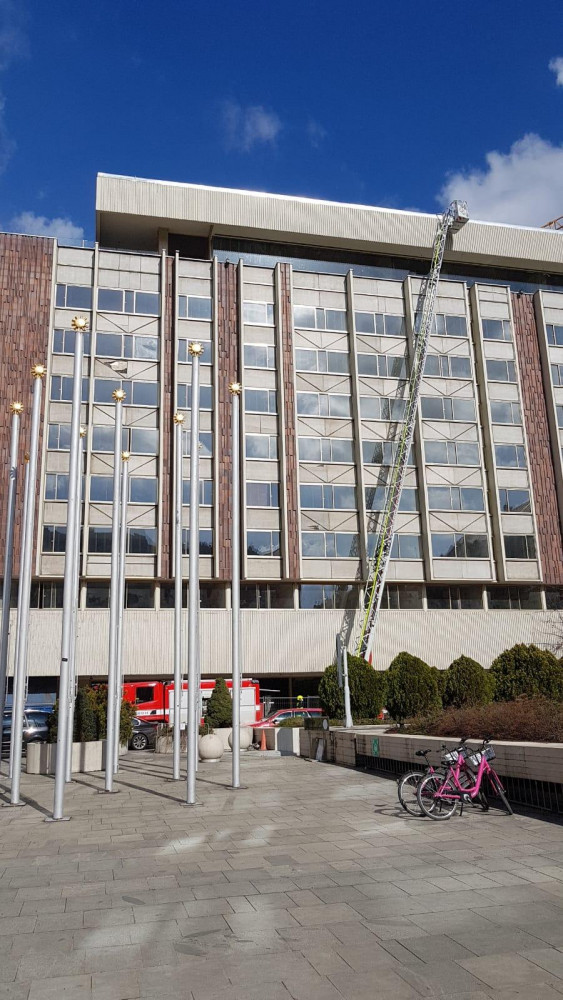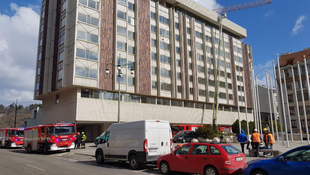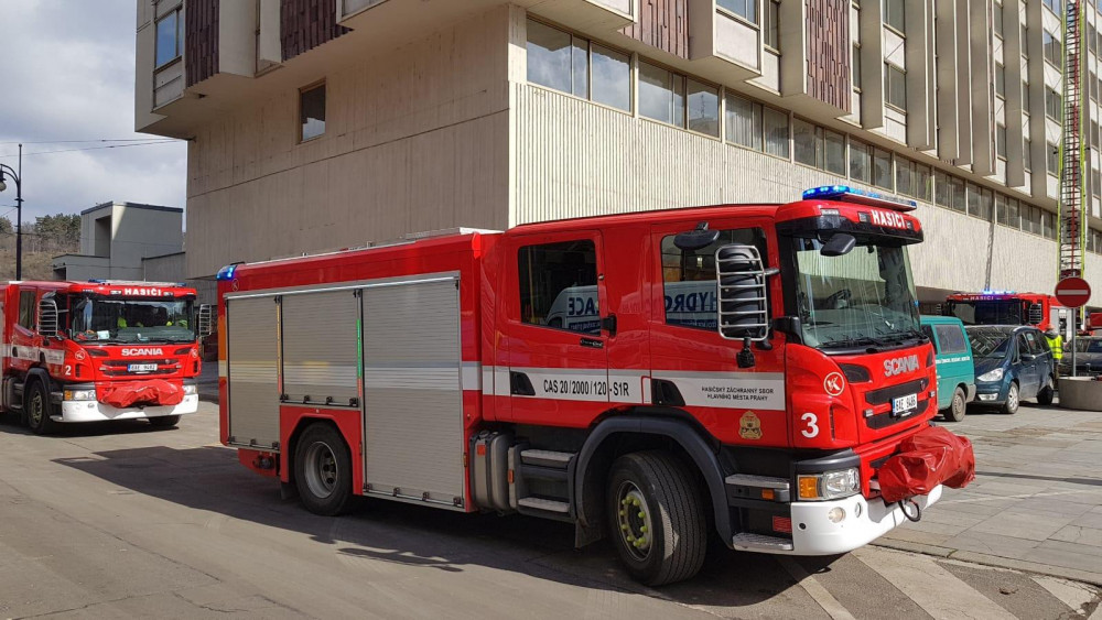 Na střeše hotelu Intercontinental hořela klimatizace. Hasiči požár rychle uhasili