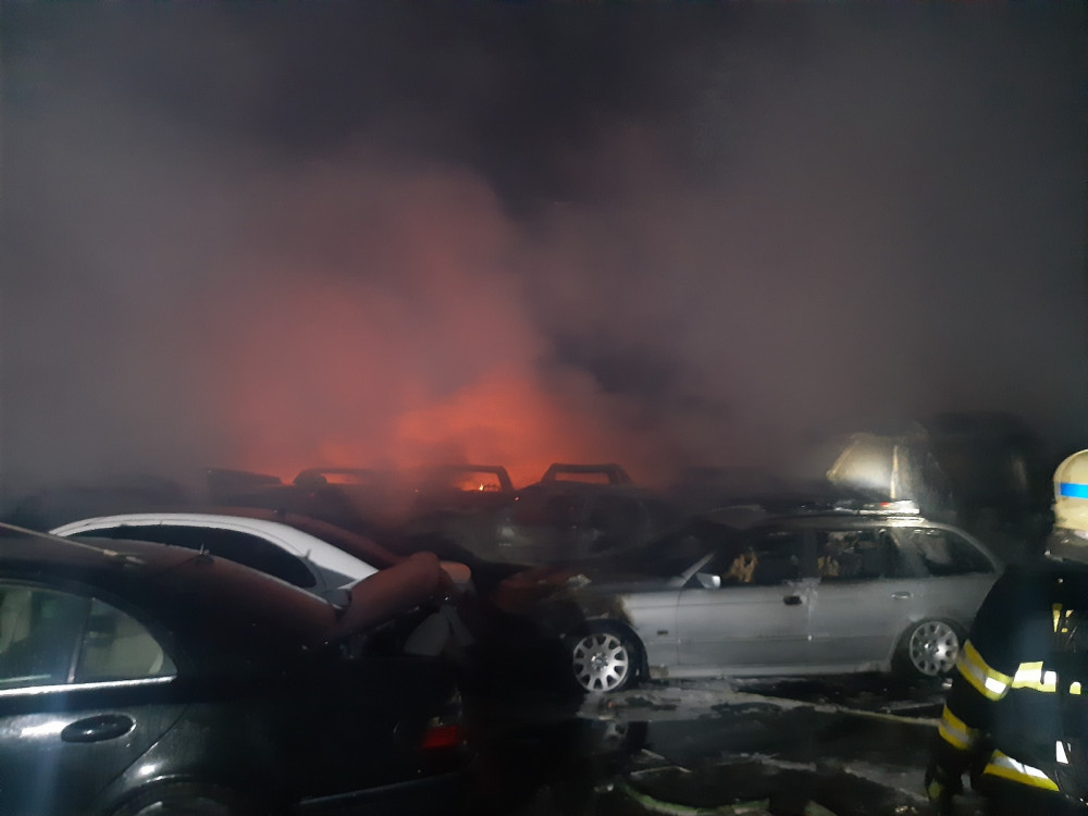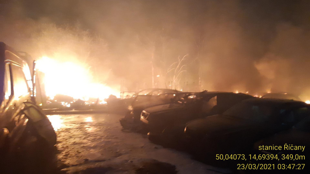 Při požáru vrakoviště u Prahy shořelo 28 aut. Škoda je pět milionů