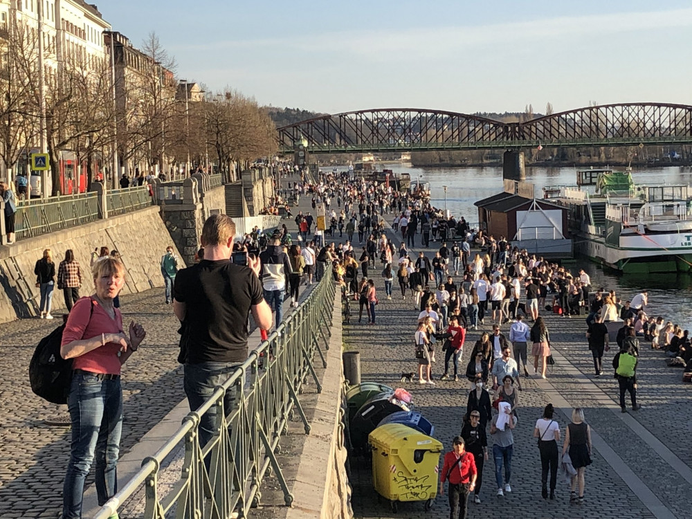 Policisté včera na náplavce rozháněli Pražany megafonem. Na Žižkově se sešlo 200 lidí u stánku s občerstvením