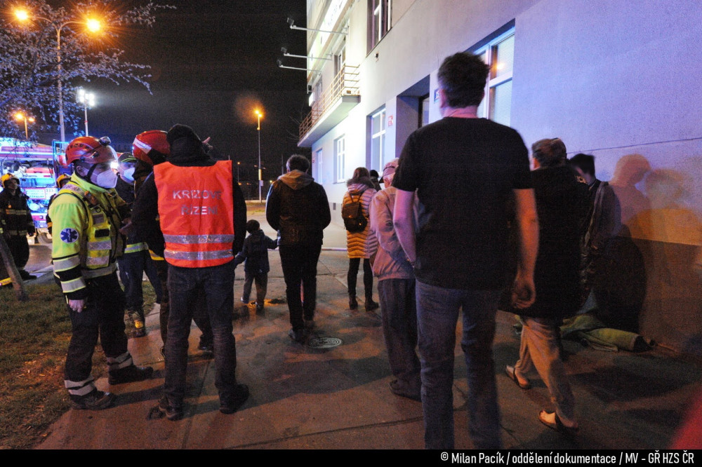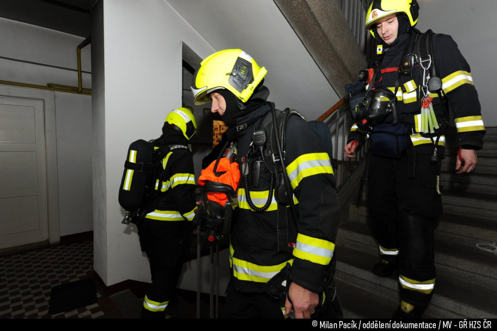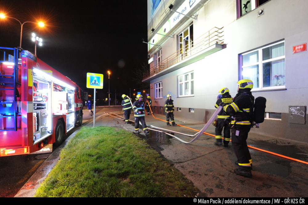 Hasiči zachránili 16 lidí při nočním požáru bytu v Praze 4. Jeden člověk skončil v péči záchranářů