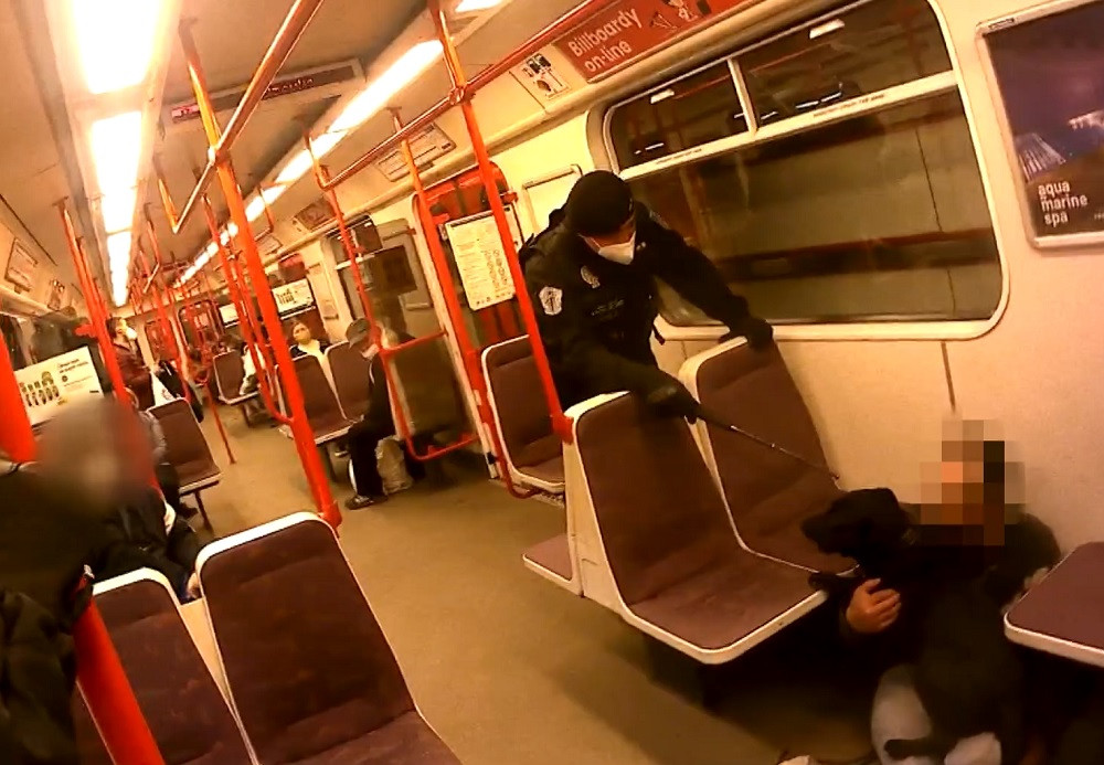 Pes pobíhal po vagonu metra a bránil svého pána. Strážnici jej zpacifikovali a přitom narazili na dalšího hledaného muže